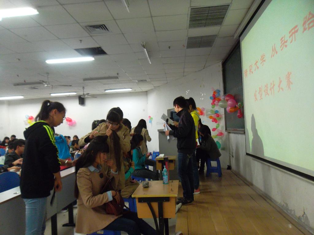 10月31日下午3:30分,在科学校区电教楼108教室,由材料与化学工程学院分团委主办,学生会女工部和美容协会承办的“精彩大学,从‘头’开始”发型设计大赛在欢快的音乐中拉开了帷幕。