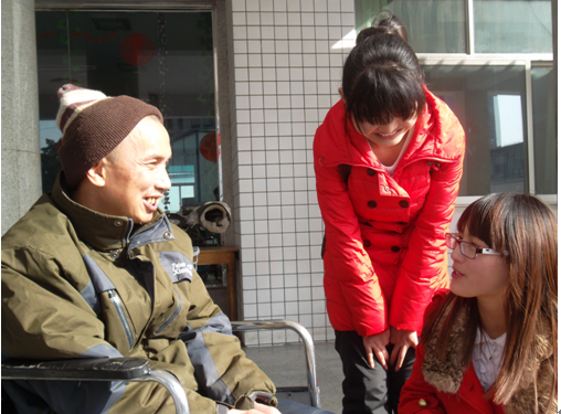 在福利院,志愿者们听取了福利院工作人员的介绍,详细了解了生活在福利院的老人和儿童的基本情况,根据他们的具体情况献上了自己的一份心意,有的学生陪老人聊天、打扫卫生,有的给老人读书念报,有的则梳头发剪指甲,福利院的老人们脸上都露出了开心的笑容。同时,志愿者们还给那里的孩子送去了食物、图书、玩具等,跟他们一起享美食、看图书、玩玩具,举行联谊活动。欢声笑语洒满福利院的每个角落,和谐融洽的氛围帮助老人和孩子们赶走孤独排遣寂寞,幸福洋溢在每个人的脸上。