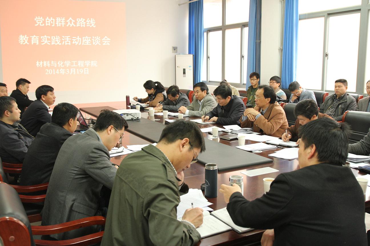 3月19日上午,材料与化工学院在化工楼222会议室召开党的群众路线教育实践活动座谈会。学院领导班子成员、支部书记、系主任、教授、博士、青年教师和学生代表共30余人参加了会议。校党委窦效民副书记、校团委张世涛书记、校就业指导中心万顺国主任、校学生处田烟副处长、校纪委副处级督导员张辉出席会议。座谈会由党总支书记陶浩主持。