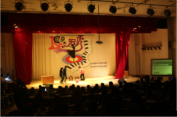 一段劲爆十足的开场舞拉开了整场比赛的序幕。本次比赛历时两个小时,节目内容丰富,形式多样,在灯光环绕的舞台上,一个个节目精彩纷呈,有吉他弹奏《雨的印记》,歌曲《好心分手》,还有手语舞蹈《我最闪亮》,小品《一路平安》、《甄嬛传》等等,精彩的节目赢得了观众阵阵掌声。在比赛现场还设立微博墙,观众可以通过新浪微博参与互动,支持自己喜爱的节目,现场气氛轻松热烈。经过激烈角逐,应用化学13-01班全体女生带来的《我最闪亮》从中脱颖而出,勇夺桂冠。