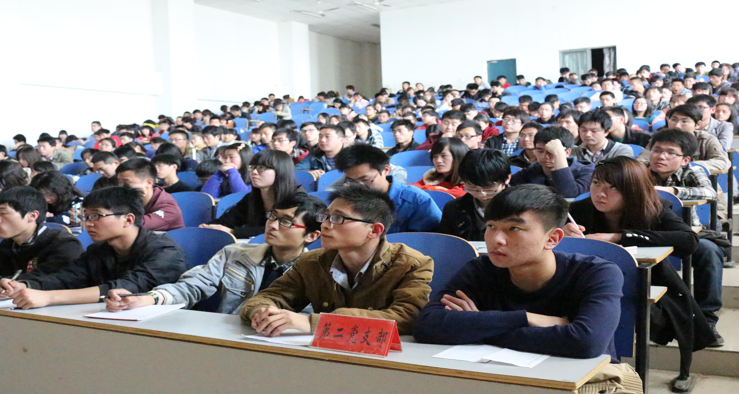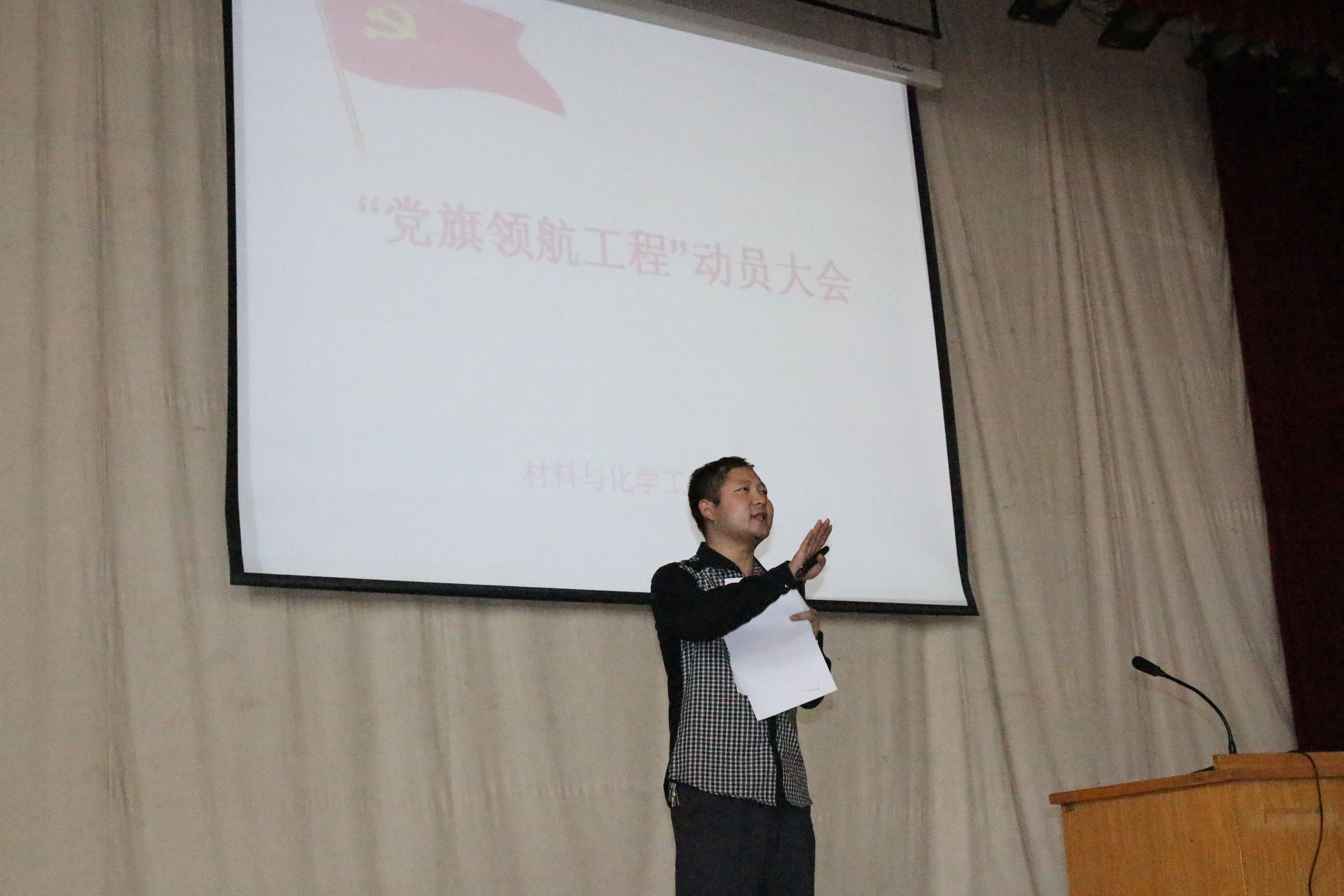 3月20日(周四)下午, 材料与化学工程学院在科学校区三教楼208召开“党旗领航工程”动员大会。学院党总支副书记宋德涛、全体学生党支部书记、全体学生党员和入党积极分子等400余人参加会议。动员大会由宋德涛副书记主讲。