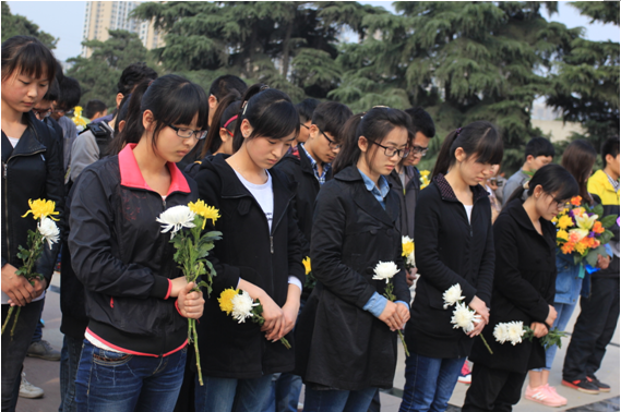 4月3日,师生们怀着对革命先烈无限崇敬的心情,来到了郑州烈士陵园。踏入烈士陵园,沉重庄严的气氛笼罩着大家,在烈士陵园工作人员的带领下,同学们有条不紊的陆续来到扫墓指定地点参与此次扫墓活动。首先,由学生代表向纪念碑敬献花篮。紧接着,全体师生满怀敬意向革命先烈哀悼三分钟。然后,全体师生在烈士墓前进行了庄严的宣誓活动,重温入党誓词。接下来,全体师生瞻仰纪念碑并敬献菊花。最后,大家到烈士墓区,国防园,吉鸿昌、吴焕先、彭雪枫、杨靖宇纪念碑亭等参观学习,深刻认识到苦难的历史、沉痛的经历、先辈的牺牲换来了今日的幸福,也充分意识到头可破、血可流的革命牺牲精神在新时期更加需要。