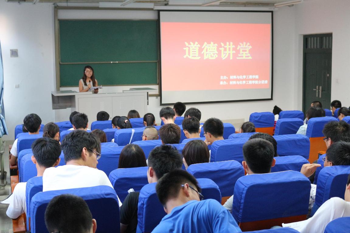 5月28日晚,由学校文明办主办、材料与化学工程学院承办的“道德讲堂”活动在科学校区化工楼218教室举行。活动以“凝聚良好道德风气,传递青春正能量”为主题,学院党总支、学工办、分团委老师和学生代表200余人参加了此次活动。