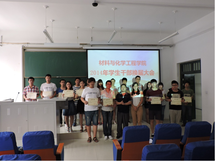 2014年6月17日下午,材料与化学工程学院在化工楼218召开2014年学生干部换届大会。学院党总支副书记宋德涛老师,分团委副书记万慧杰老师出席了大会。学院分团委、学生会全体成员以及各班级主要学生干部参加了会议。第三十五届学生会秘书长李一甲同学主持大会。