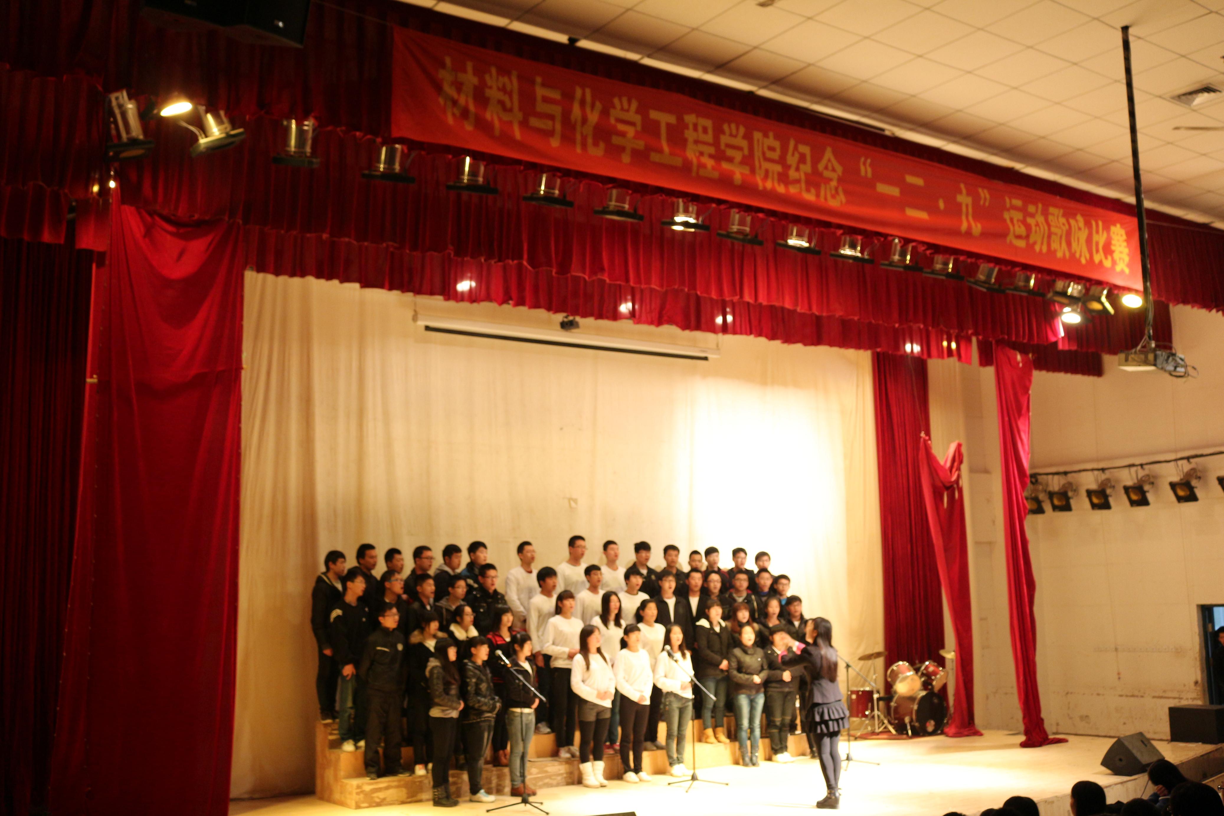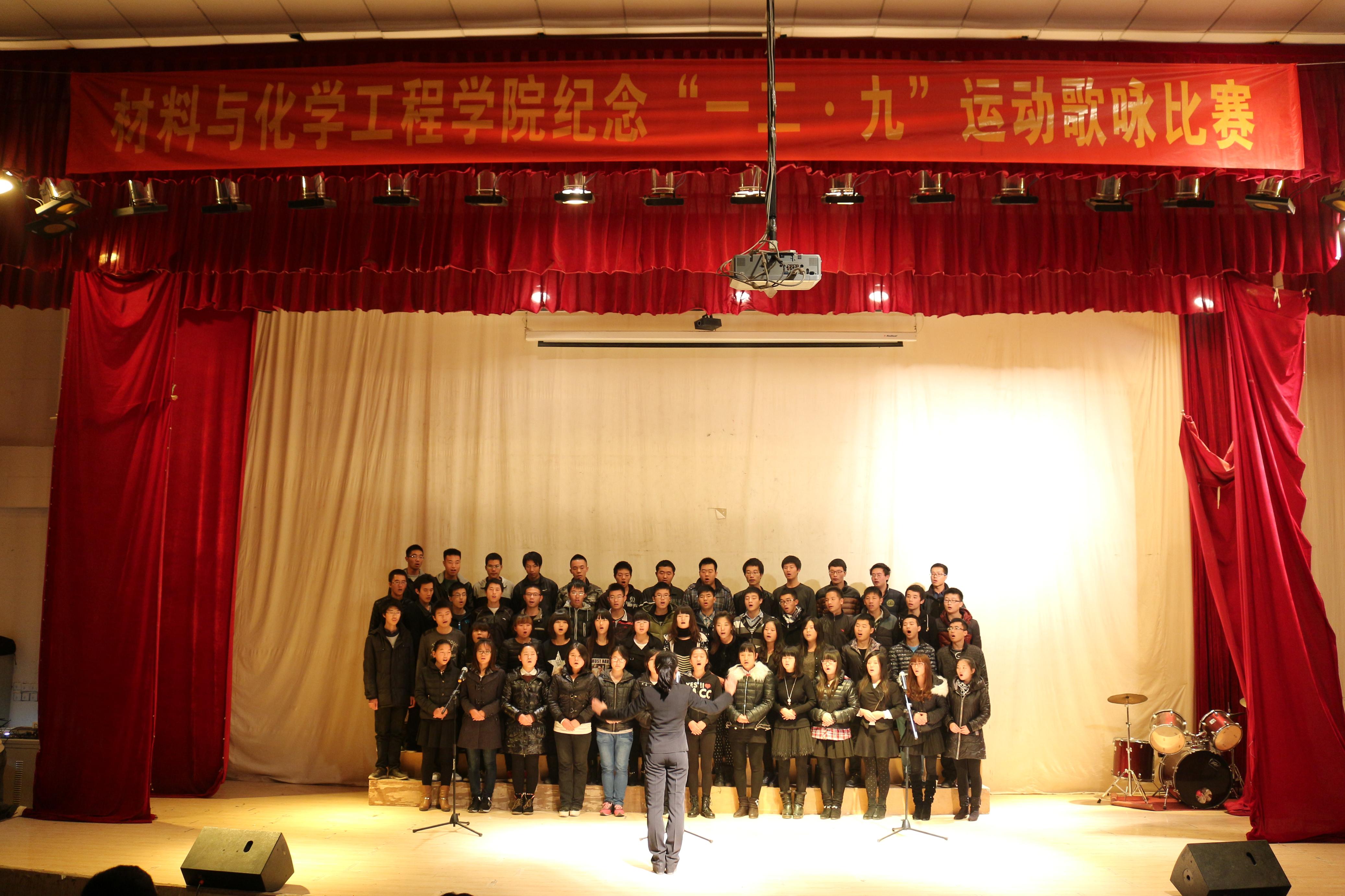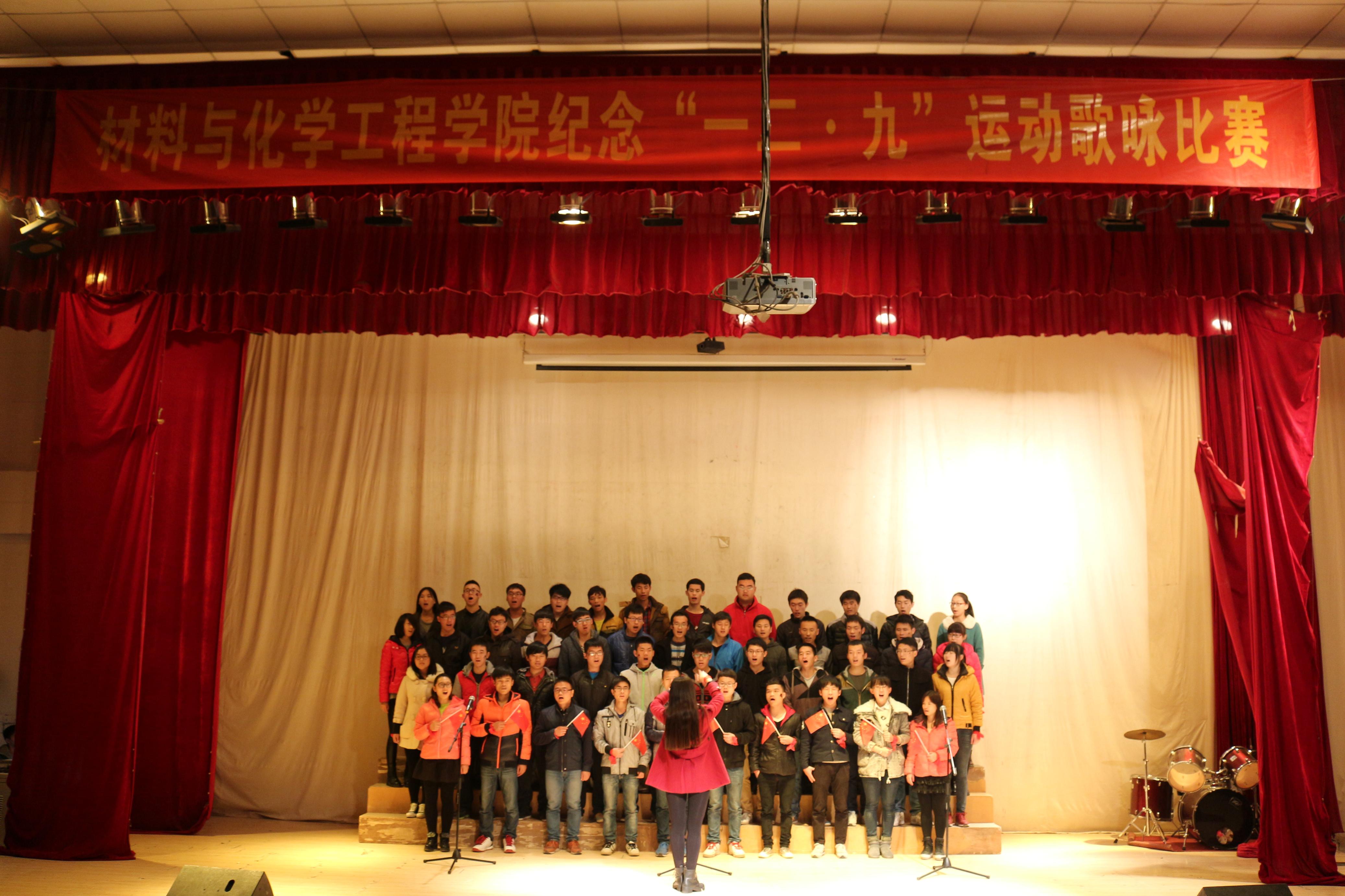 2014年11月29日(周六)上午,材料与化学工程学院12•9大合唱决赛在科学校区三教楼208活动中心举行。我院2012级、2013级、2014级共20个班级1000余名学生参加了本次决赛的角逐。学院党总支宋德涛副书记、分团委、学工办负责人、辅导员老师,学生会主要干部和各年级团总支书记们担任了比赛的评委。