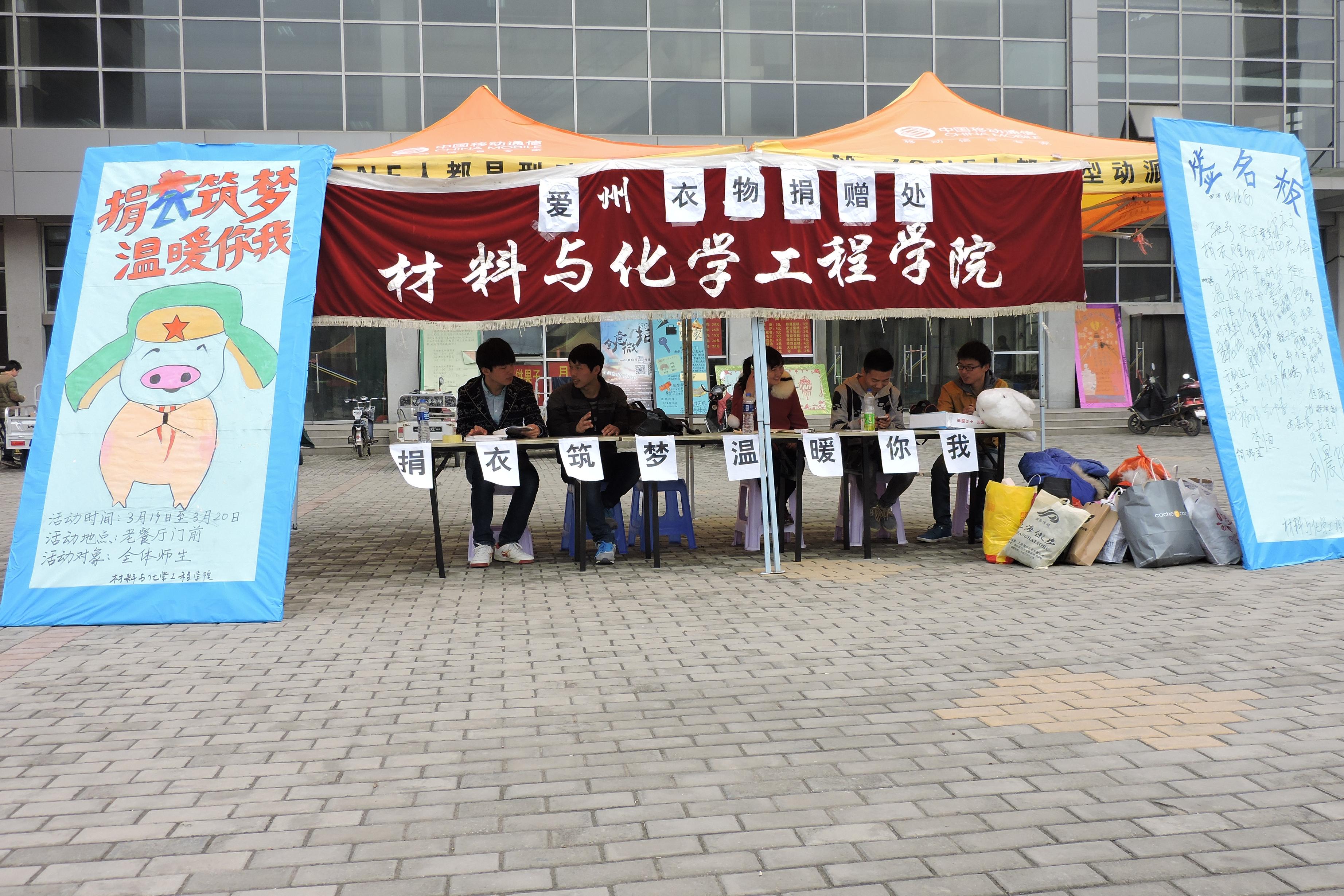 近日,了解到西藏昌都地区依然寒冷,那里的学生缺少棉衣。材料与化学工程学院通过宣传动员在科学校区组织了以“捐衣筑梦 温暖你我”为主题的爱心捐衣活动。
