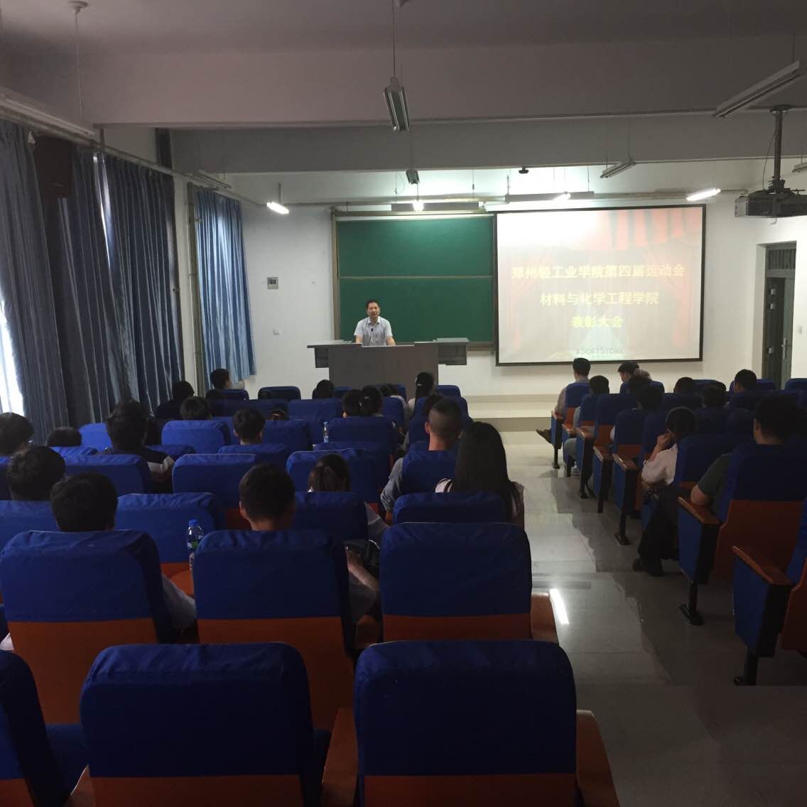 在刚刚结束的学校科学校区第四届运动会中,材料与化学工程学院全体运动健儿发挥顽强拼搏,奋勇争先的精神,在体育竞技和精神文明方面都取得了好成绩。为认真总结,表彰先进, 我院在科学校区化工楼218举行校运动会总结表彰大会,学院党总支宋德涛副书记、分团委负责人彭东来老师及全体运动员、礼仪方阵代表、文明班级代表参加了会议,会议由分团委负责人彭东来老师主持。