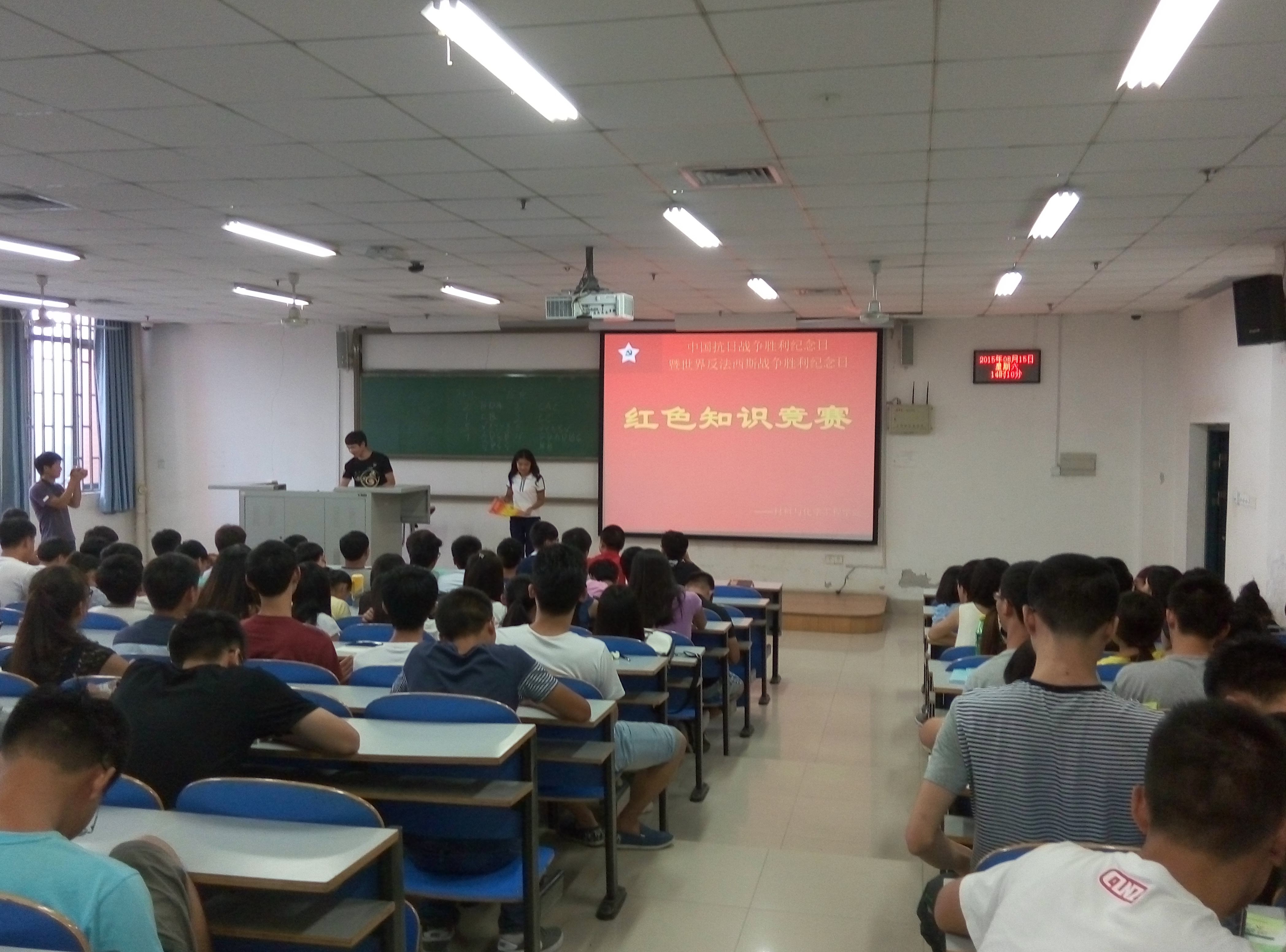 今年是伟大的中国人民抗日战争暨世界反法西斯战争胜利70周年。为在大学生中大力宣传抗战事迹,努力弘扬抗战精神,深入研究抗战理论,深切缅怀抗战先烈,坚定不移地走中国特色的社会主义道路,做忠诚于中国共产党、忠诚于国家、忠诚于民族的新型大学生。9月2日材料与化学工程学院各团支部举办“中国人民抗日战争暨世界反法西斯战争胜利70周年”红色知识竞赛。