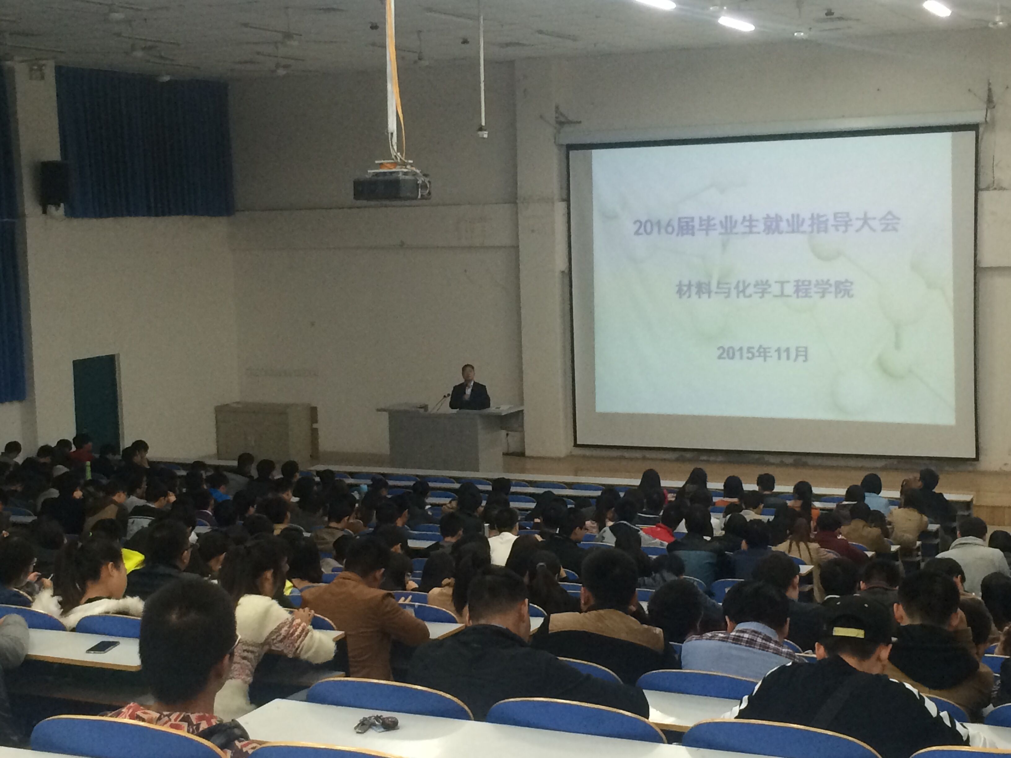 为引导广大毕业生树立正确的择业观和就业观,帮助毕业生了解就业形势和相关就业政策,材料与化学工程学院于11月3日19:00在科学校区三教楼408召开2016届毕业生就业指导大会。学院党总支副书记宋德涛老师、毕业班辅导员、主管就业老师及全体毕业生参加了大会。