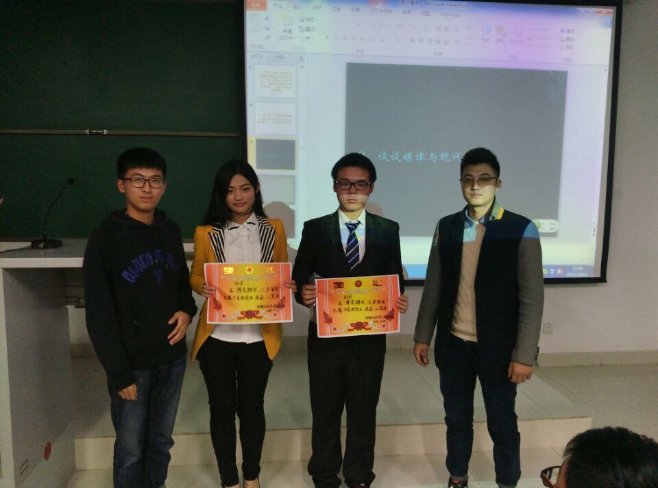 比赛共产生一等奖1名,二等奖2名,三等奖3名。环境工程15-01的徐梦瑶同学以其出色的表现,夺得了此次演讲比赛的冠军头衔。她优美的播音员式的嗓音以及骨子里透出的演说家的身段征服了全场观众以及评委。高分子材料与工程15-01宛萌,新材料与能源器件15-01王亚松荣获二等奖,化学15-01李会林,新材料与能源器件15-01林静新材器,高分子材料与工程15-02袁阳凯荣获三等奖。