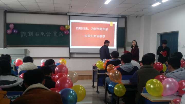 本次团日活动共有三项内容。第一项:外出打工的同学讲述打工经历和社会经验。假期实践使大学生了解社会融入社会,同时激励同学们对知识的渴望,珍惜大学时光。第二项:外省份同学介绍家乡。一张张PPT带领同学们看遍大江南北,“吃”遍五湖四海,此环节不仅丰富了同学们的眼界,也让大家了解到当地的风俗习惯,带给同学们的是视觉盛宴与心灵震撼。第三项:回顾过去,展望未来。学生干部发表了激情澎湃的演讲,为同学们加油打气,鼓励同学们在新的一年里取得优异成绩。