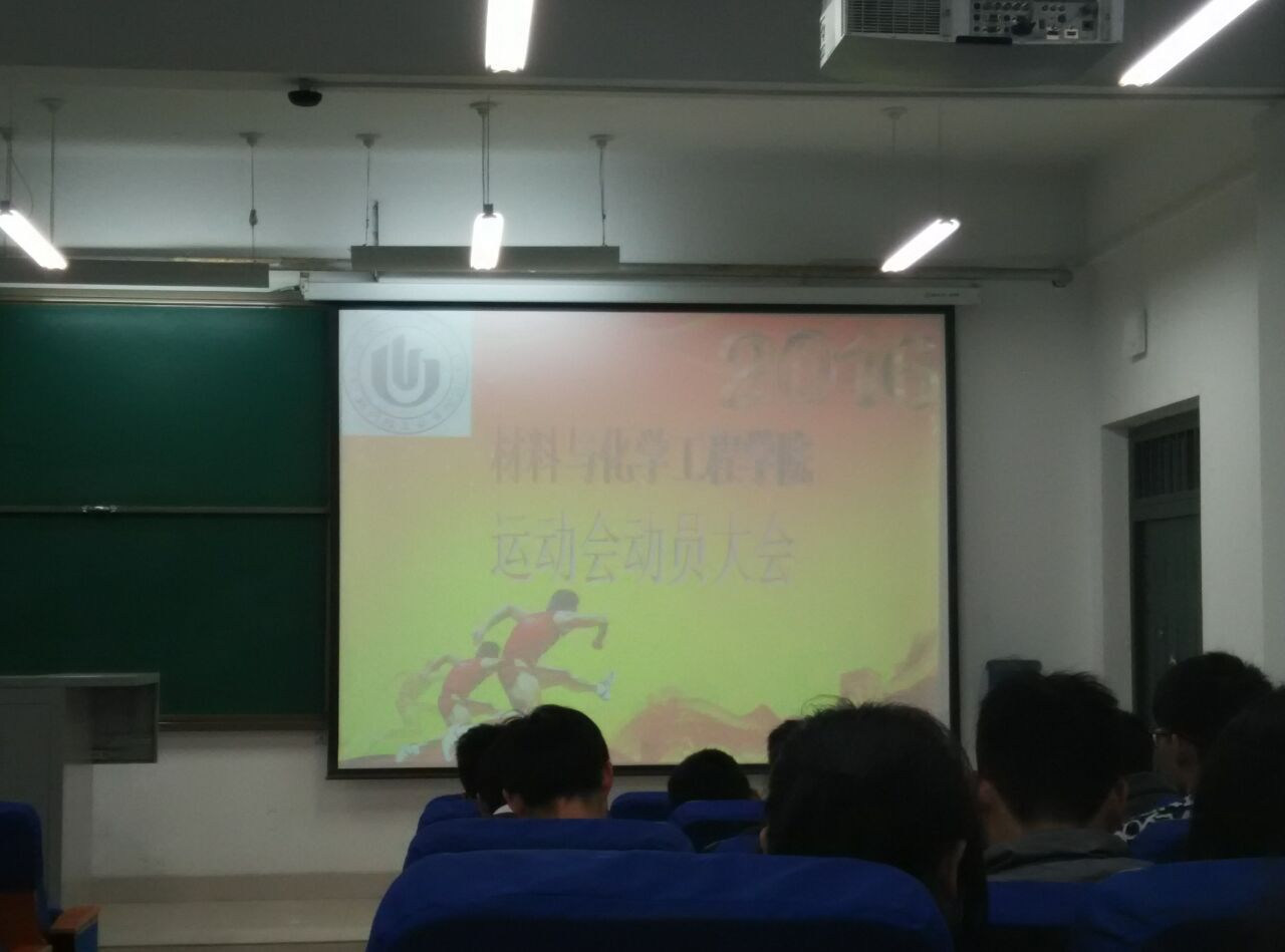在校春季运动会到来之际,为了提高在校大学生参加运动的积极性,培养良好的身体素质,材料与化学工程学院于2016年3月23日下午在化工楼218召开“运动会动员大会”。与会人员包括全体运动员和所有运动会负责人,学院分团委书记朱广正老师出席并作动员讲话。
