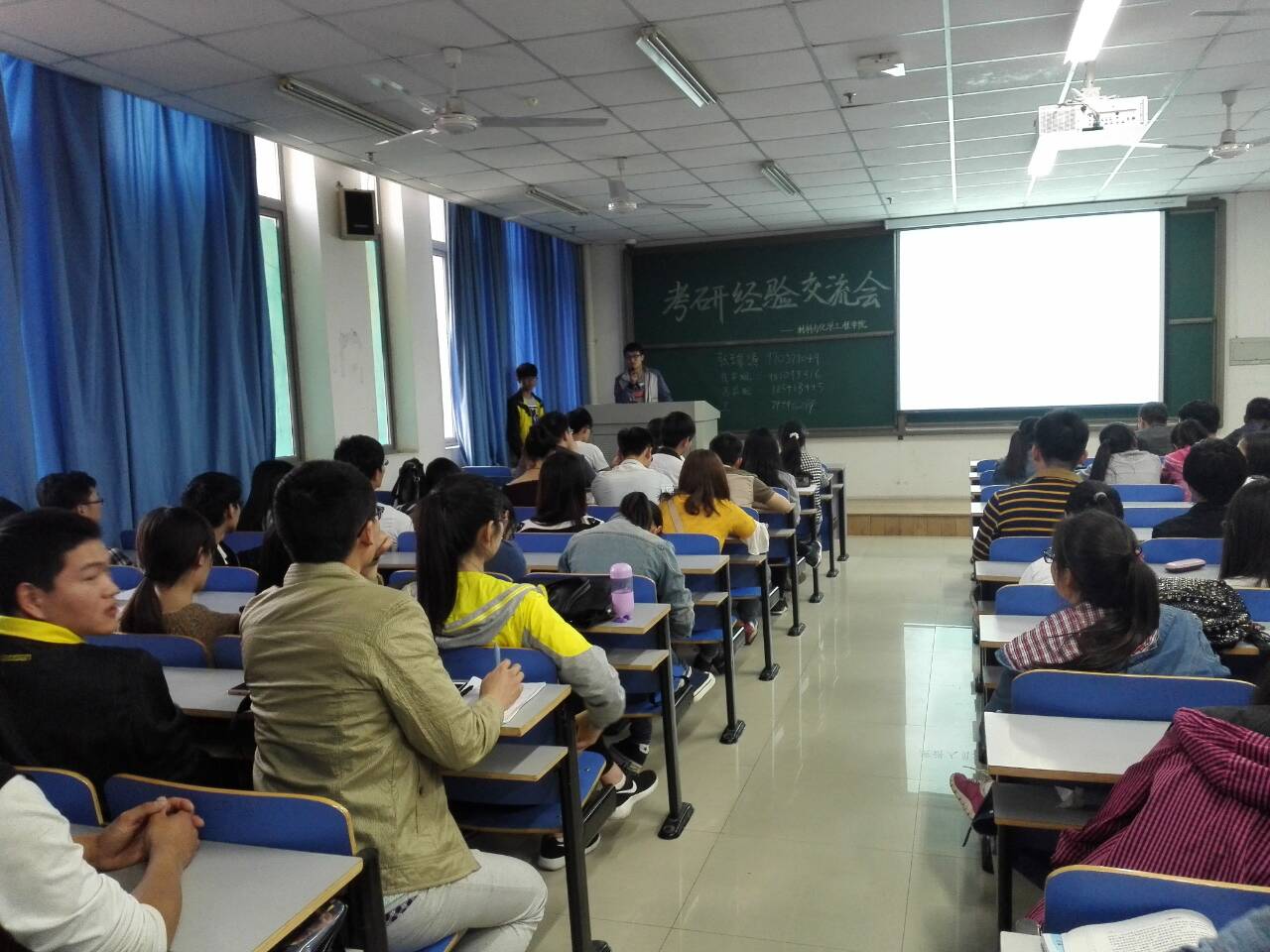 为了营造良好学风,使大学生进一步了解考研信息,掌握考验技巧,在剩余大学时光里更好地利用时间准备考研,提高自我社会竞争力,4月17日下午,由材料与化学工程学院分团委主办、学生会学习部承办的主题为“智慧交流经验传递”大学生考研经验交流会在一教楼309室举行。本次交流会邀请了2016届毕业生中考研成绩优异的学生、班干部做经验交流,其中不乏考取南开大学、哈尔滨工业大学、大连理工大学等名校的同学分享经验。