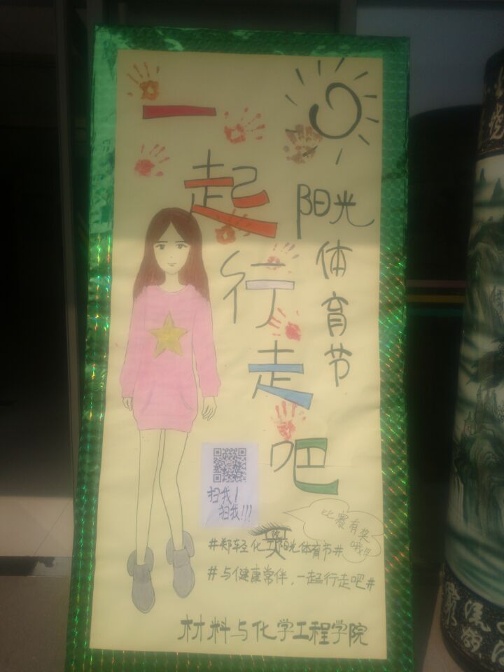 本次活动由材料与化学工程学院学生会体育部承办,郑州轻工业学院全体学生为参与对象,采取新媒体方式参与活动。同学们通过课余时间徒步行走,在每晚十点发一条带有 #郑轻化工院阳光体育节#、#与健康常伴,一起行走吧# 两个话题的微博,附上自己手机QQ上今日行走步数的截图,并@郑轻化工学院学生会体育部便可参加比赛。此次活动时间自由,减免了同学们对老套活动硬性要求时间的厌烦,增强了大家对行走的积极性。几天的徒步活动在大家的积极配合下完美落幕。本次活动获奖人数共15人,第一天奖励前十名,第二天奖励前五名。