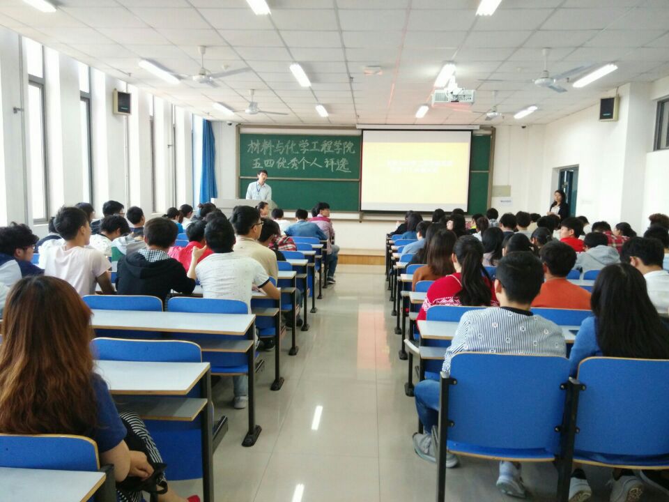 为展示和表彰 2015至2016 学年中涌现出的政治素质过硬、模范作用突出、骨干作用明显的先进集体和优秀个人,材料与化学工程学院分团委于4月19日下午4点30在一教楼309和311举办学院五四推优评先答辩活动。此次答辩由分团委副部长宋宇和分团委干事梁俊杰主持,学生会主席团和各部部长出席了本次活动,评委由大一到大三各个班级团支书担任,各班班委悉数到场。