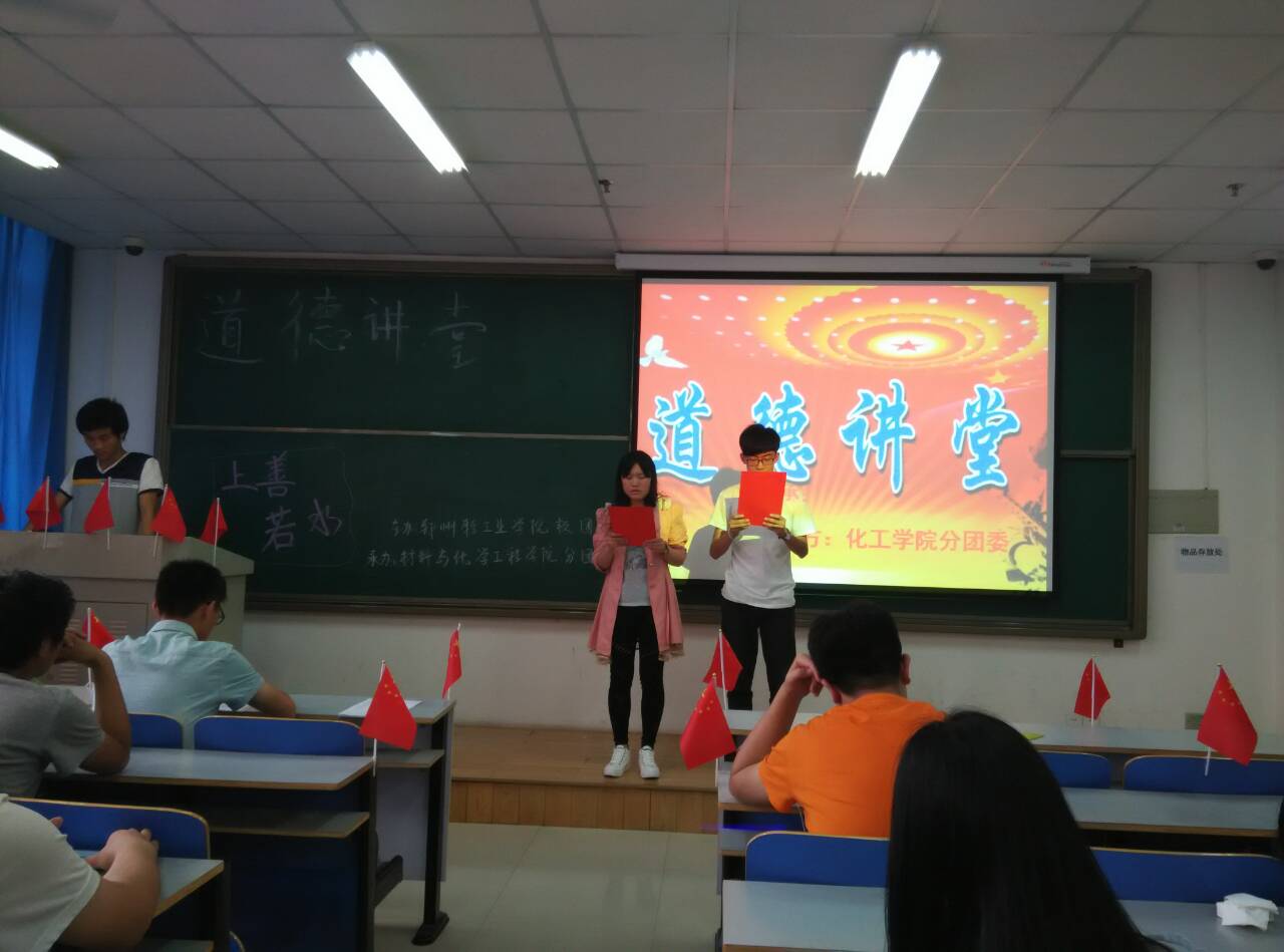 为了提高当代大学生的道德素质,升华自我,2016年5月12日,材料与化学工程学院分团委在科学校区一教楼311开展了道德讲堂活动。学院大一大二的同学参加了本次活动。