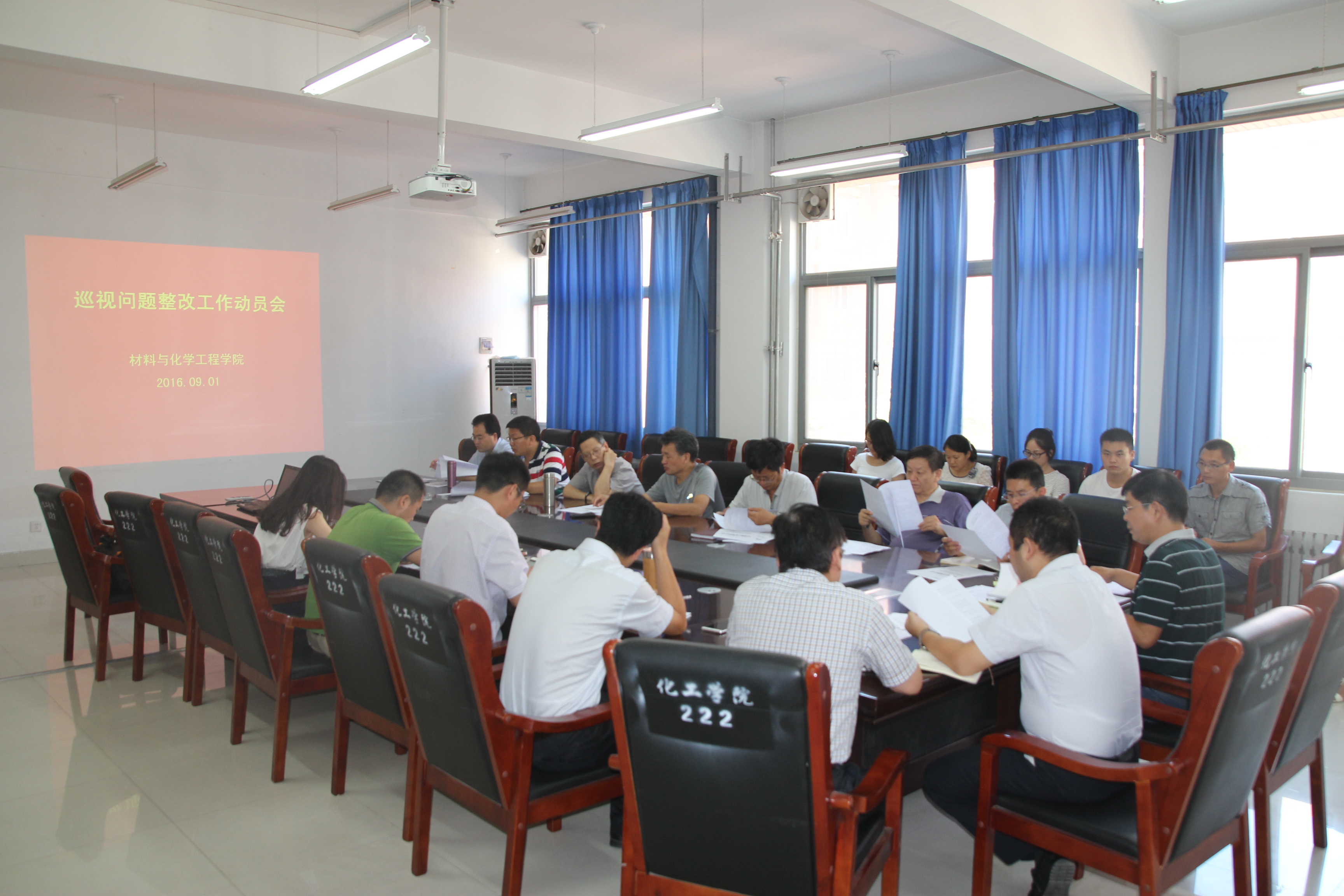 为贯彻落实学校巡视组反馈意见整改工作动员会会议精神,根据学院党总支关于巡视整改工作的整体安排,9月1日下午,材料与化学工程学院在化工楼222会议室召开巡视问题整改工作动员会。会议由学院党总支书记康国磊主持,学院总支委员和各支部委员参加会议。
