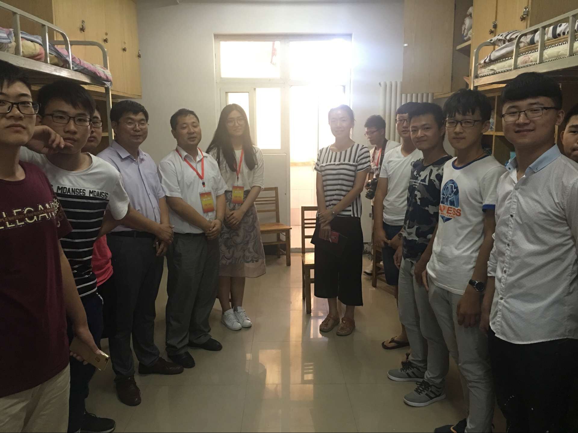 9月7日下午四点,材料与化学工程学院党政领导及党政办公室、分团委、学工办、新生辅导员老师、新生班主任老师走进学生宿舍看望2016级新生,了解新生的思想状况。