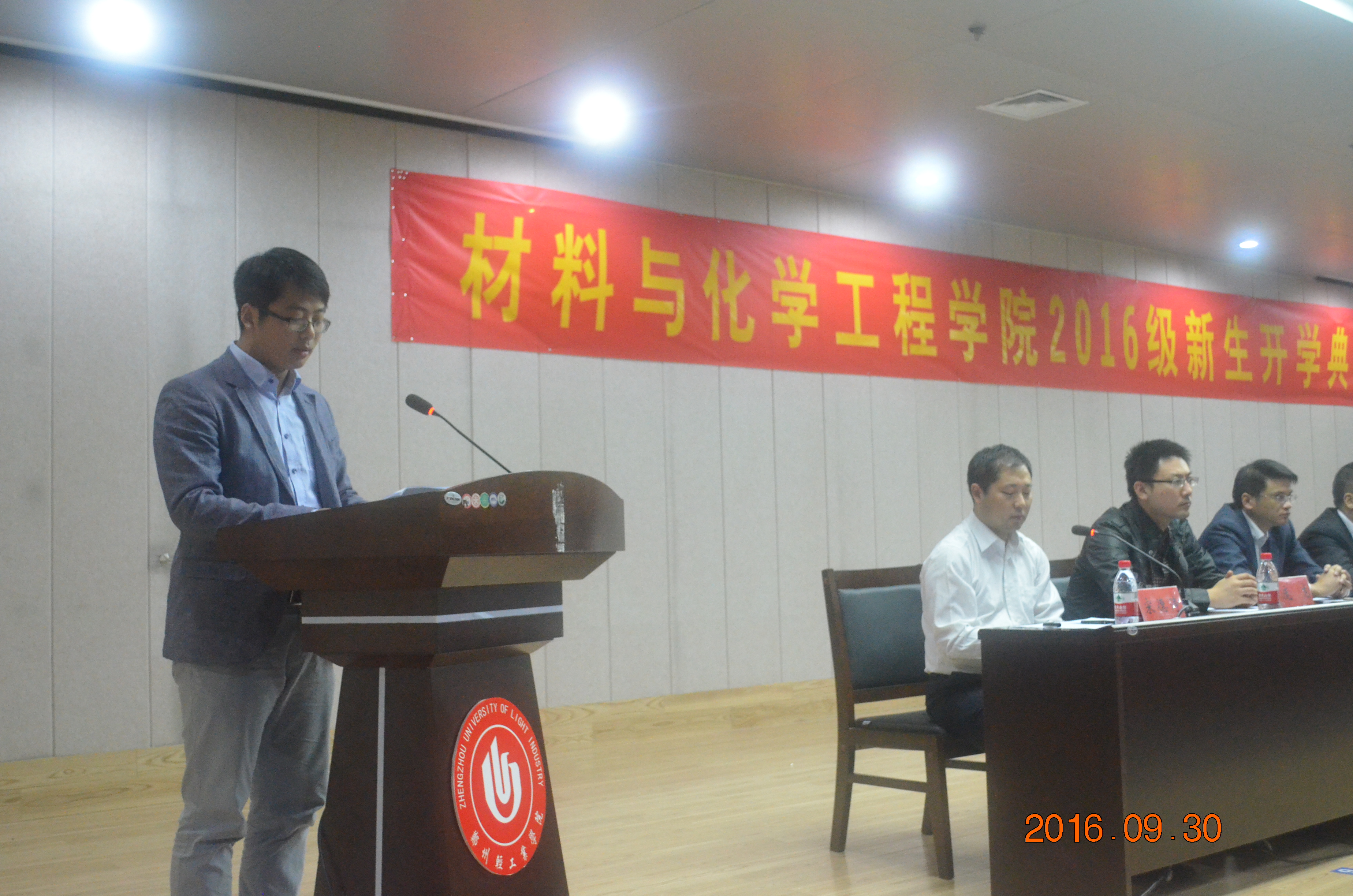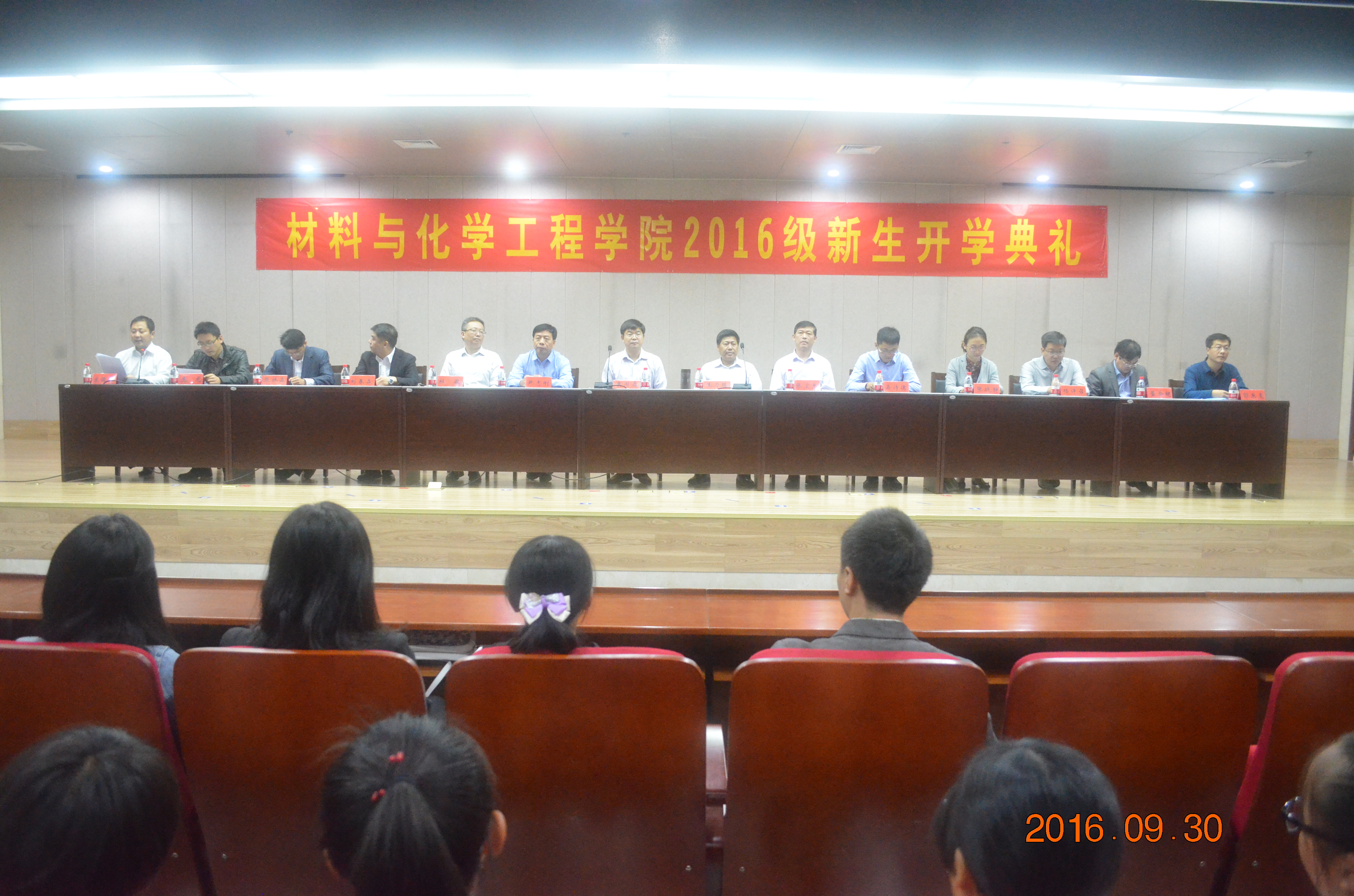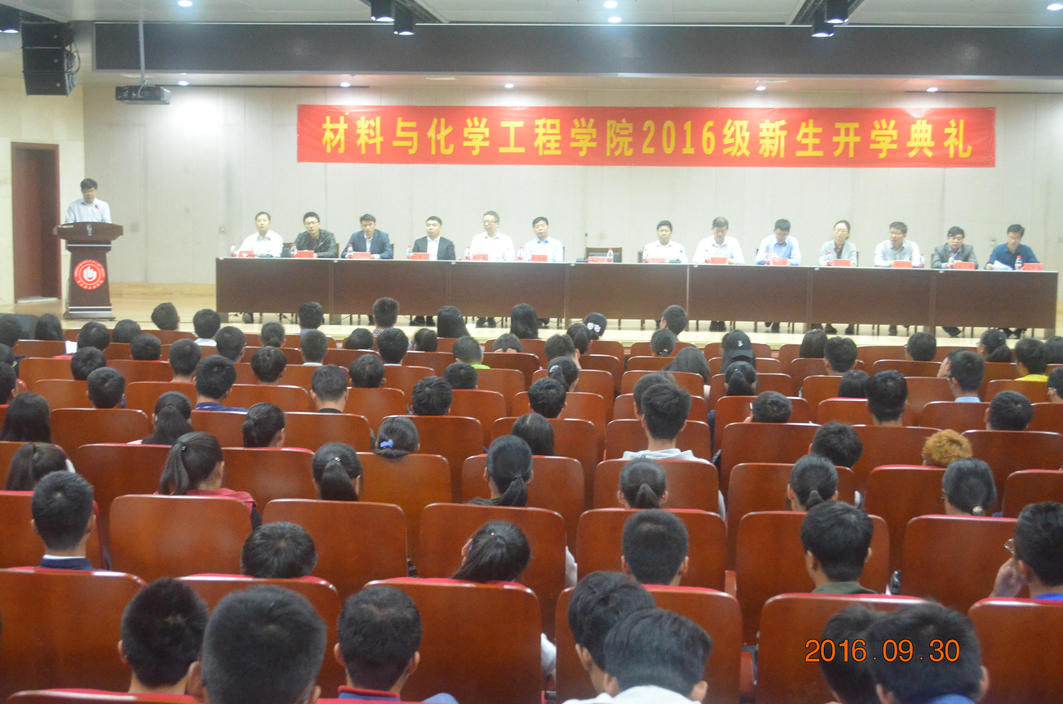 9月30日,材料与化学工程学院2016级新生开学典礼暨专业教育大会在科学校区逸夫图书馆学术报告厅隆重举行。学院全体领导、各系(中心)主任、2016级新生班主任、党政办公室、学工办、分团委、辅导员及专业教师等30余人出席了大会,2016级全体研究生、本科生新生参加了会议,会议由党总支副书记宋德涛主持。