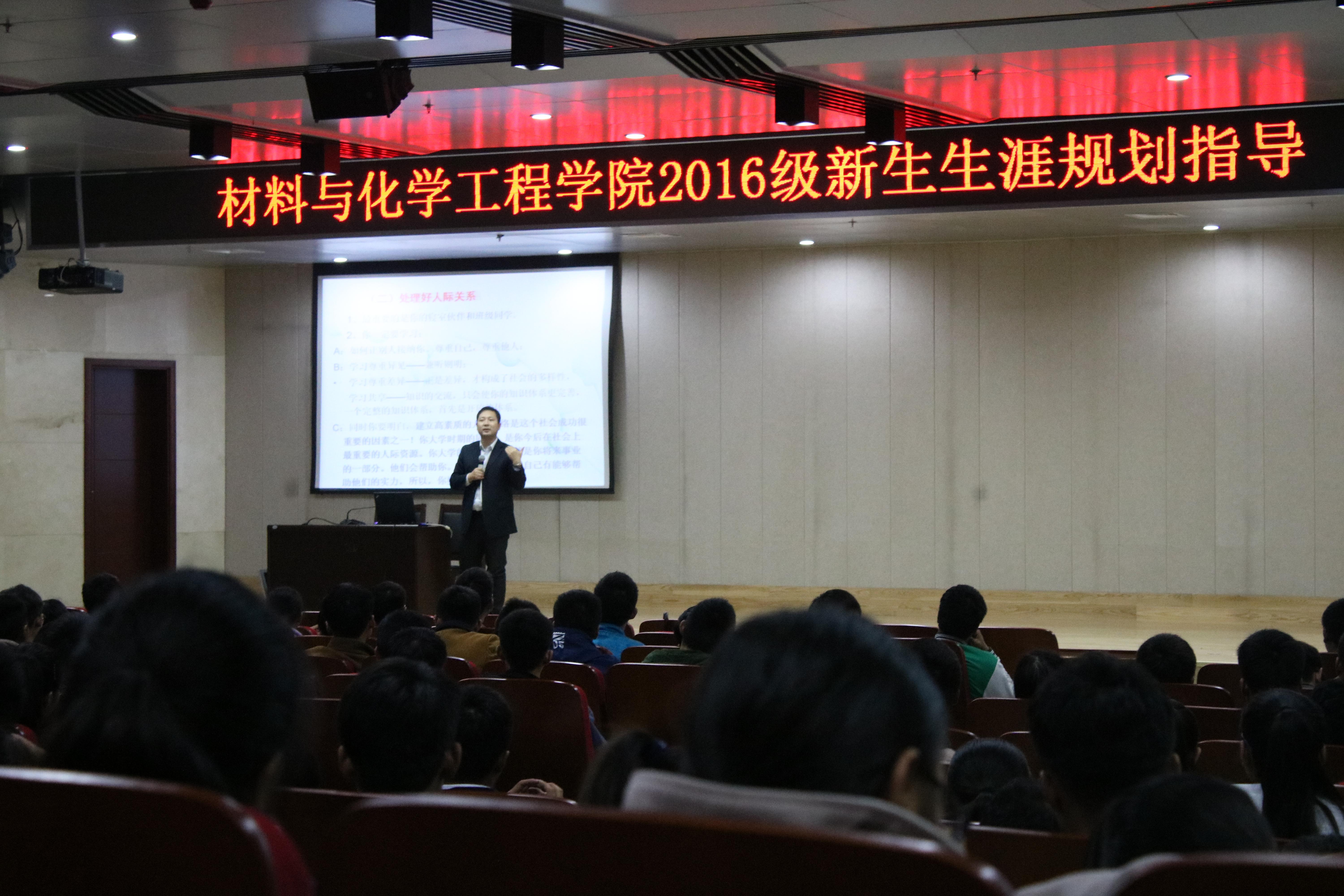 为了进一步培育优良院风、学风,积极引导广大学生学习科技知识,陶冶文化情操,提高实践本领,做好学业规划,由材料与化学工程学院分团委主办的学风建设月系列活动于11月初拉开帷幕。11月02日中午12:30,针对2016级同学开展的学业规划指导大会在科学校区图书馆学术报告厅准时开讲,担任本次主讲的是学院党总支副书记宋德涛老师,16级全体同学参加了本次讲座