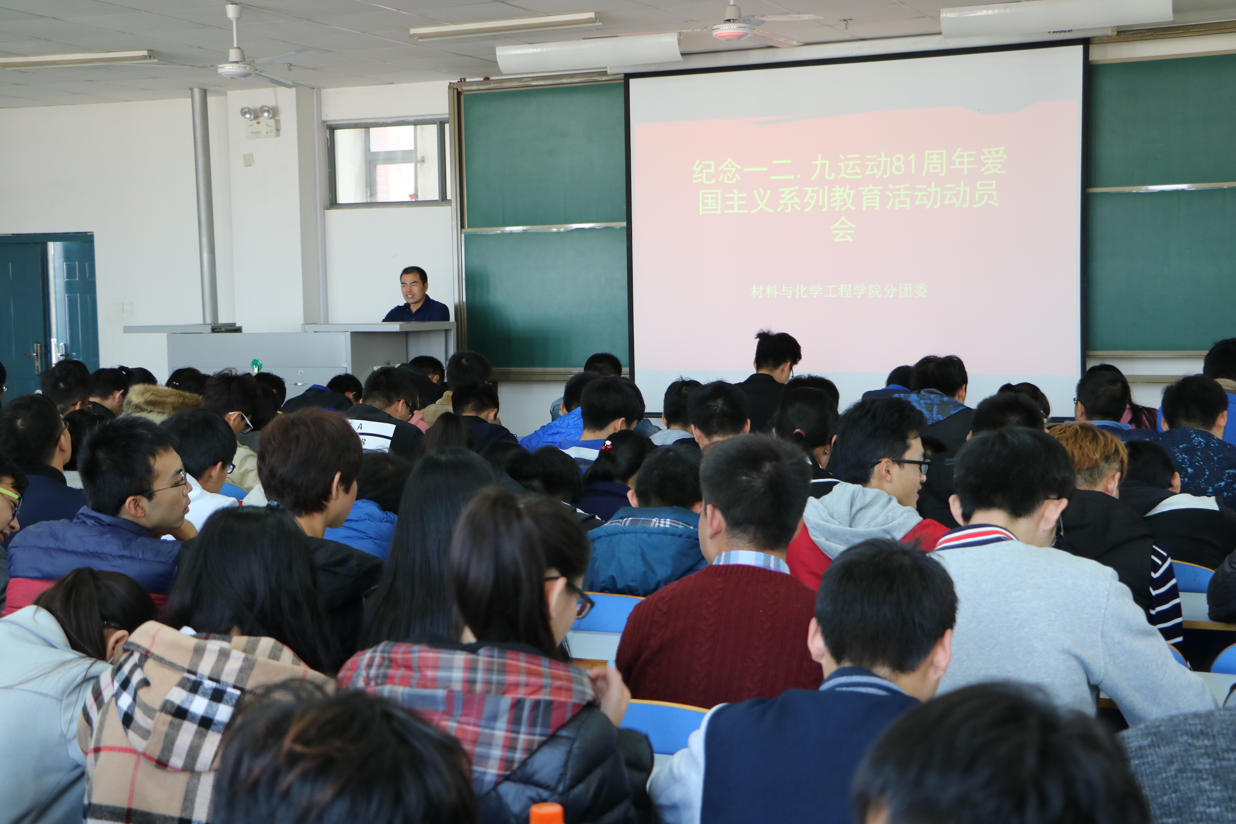 为了纪念“一二.九”学生爱国运动81周年暨纪念长征胜利80周年,进一步弘扬爱国主义精神和革命传统精神,展现新时代大学生青春风采,依据校团委《关于举办纪念“一二.九”运动81周年爱国主义系列教育的通知》,11月3日中午12:30,材料与化学工程学院分团委在科学校区二教楼916召开主题系列教育活动动员大会,动员部署系列教育的开展,分团委书记朱广正老师和全体学生干部参加本次动员大会。