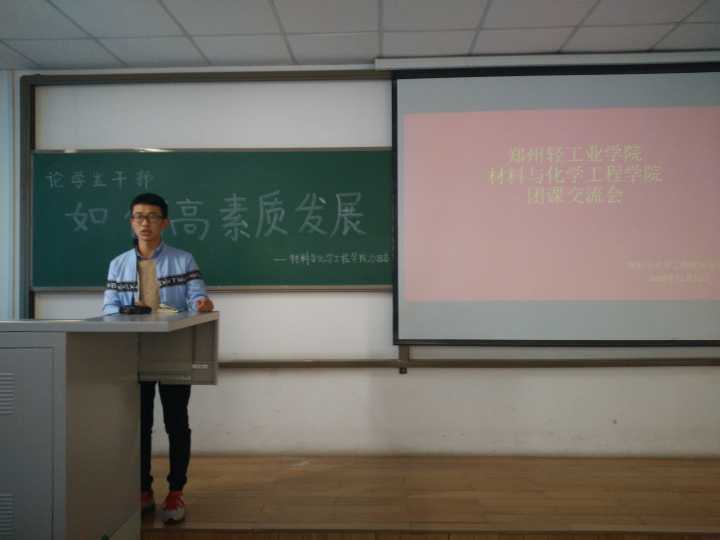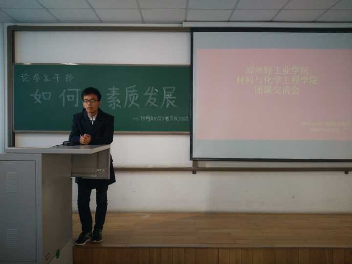 为深入贯彻落实团中央相关文件精神,切实加强团学干部队伍建设,提高广大团学干部的思想政治素质、工作能力,2016年11月14日中午12点30分,材料与化学工程学院分团委在二教楼808开展以“提升素质,引领发展”为主题的团课交流会。2016级全体学生干部和2015级优秀学生干部代表参加了本次大会,大会由分团委副书记梁俊杰主持。