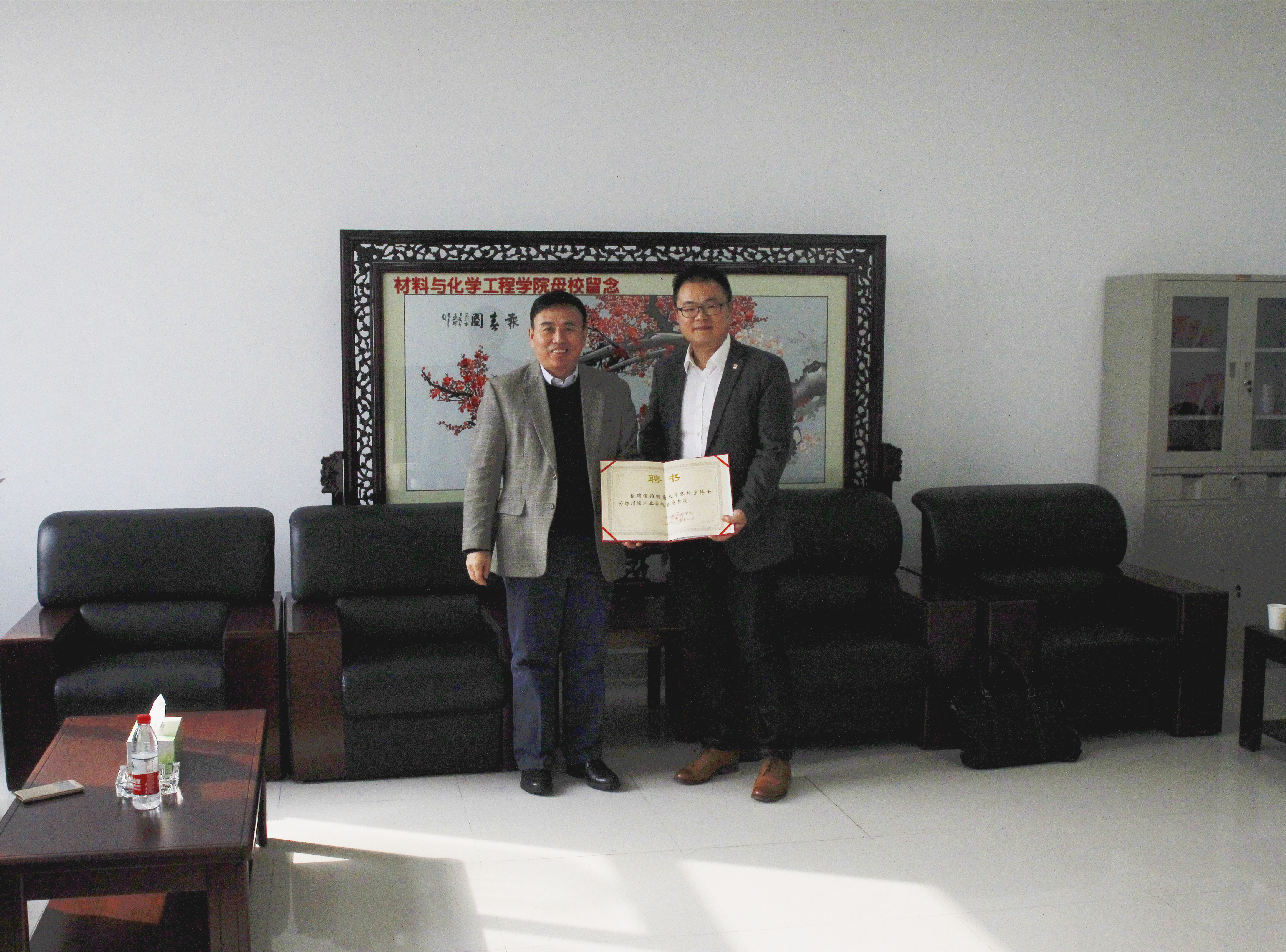 方少明副校长为张振宇博士颁发聘书,对张振宇博士受聘我校客座教授表示感谢,向张振宇博士介绍了我校和材料与化学工程学院的基本情况,并希望双方进一步加强学术交流与合作,为我校材料与化学工程学院的学科建设、团队建设和科学研究带来新的动力。