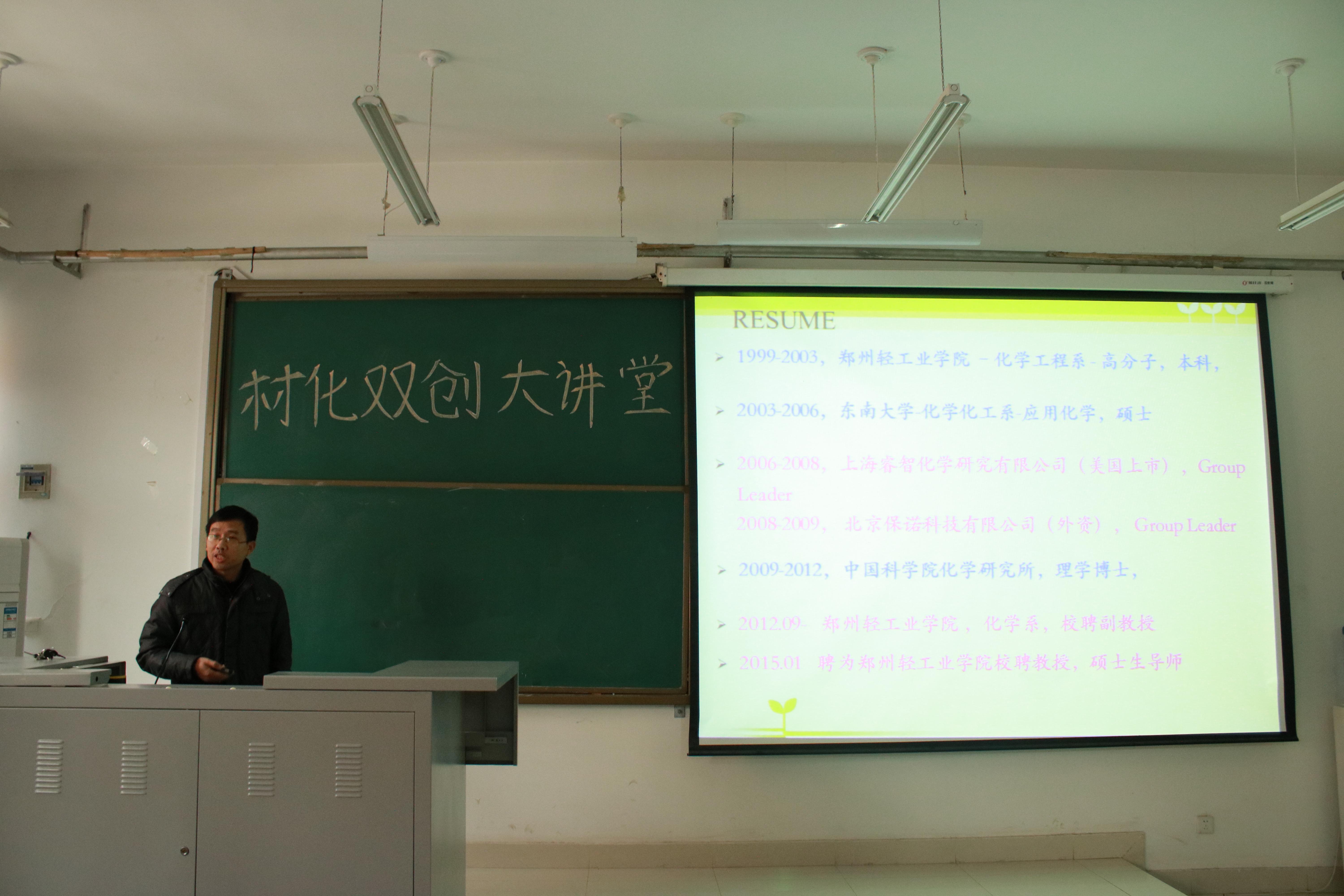 11月28日,由材料与化学工程学院分团委主办,学生会科技部承办的第二期“材化双创大讲堂”科技创新讲座在科学校区化工楼218室成功举办,本次讲座邀请了材料与化学工程学院靳清贤博士、李凤彩博士、分团委书记朱广正老师以及100余名对创新创业感兴趣的同学。此次讲座由靳清贤老师主讲。