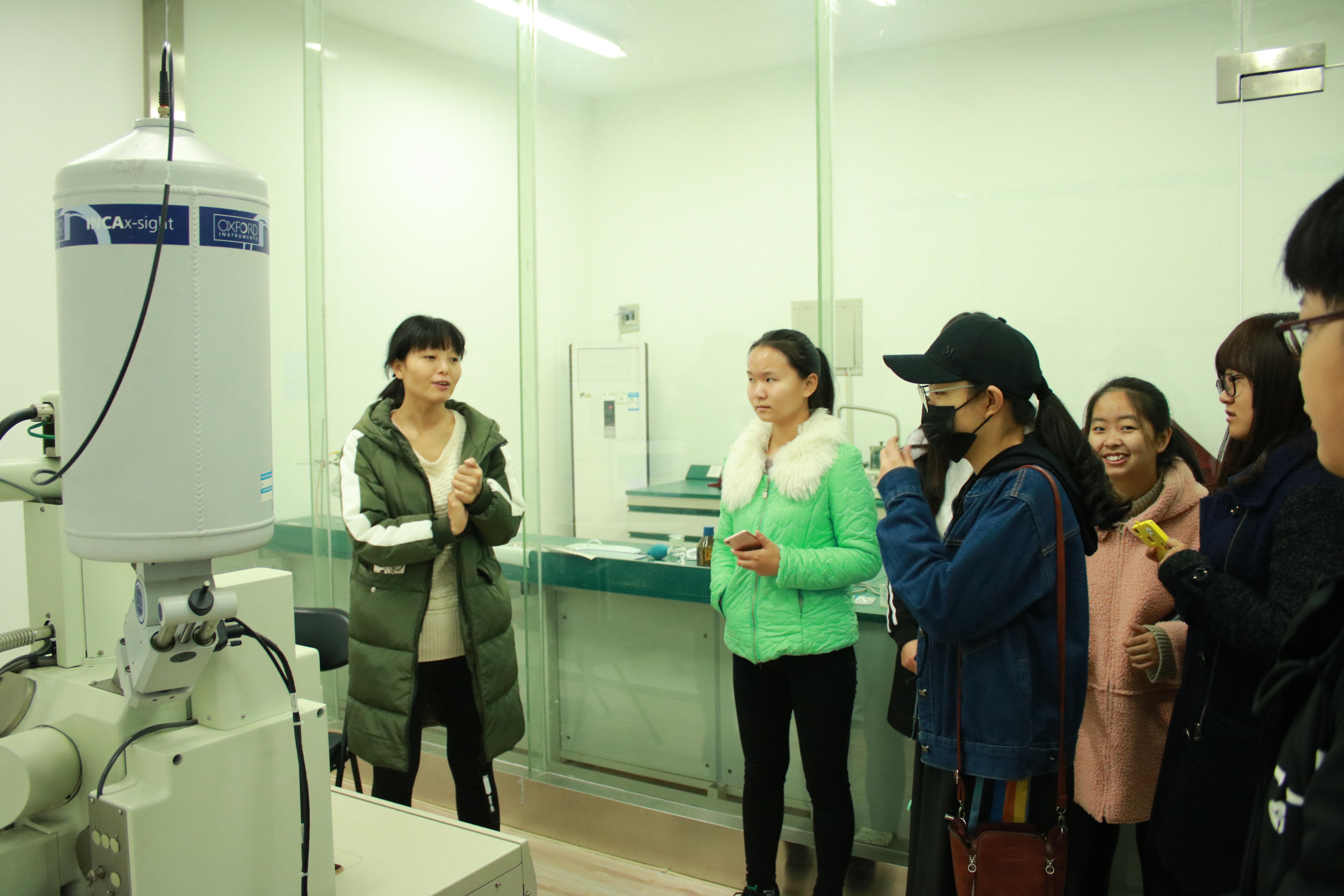 本次参观活动旨在帮助低年级学生了解学院现有的科研设施,初步掌握相关设备的功能及使用方法,为下一步的走进实验室、参与课题研究打下良好基础。参观的同学在学生会科技部人员的组织下有序进入实验室,依次参观了高分辨透射电子显微镜、扫描电子显微镜、场发射扫描电子显微镜、莱卡超薄切片机等一些重要仪器。在参观过程中,李老师极有耐心的解答同学们的问题和疑惑,她精辟的解说赢得了同学们的喝彩。科技部的干事也充当起解说员认真细致的为来参观的同学们讲解一些相关的知识,使得同学们对这些仪器的价值、主要技术参数、应用领域、使用方法等方面有了更深了解。最后参观同学和李老师合影留念,此次活动中同学们在收获知识的愉悦氛围中圆满结束。