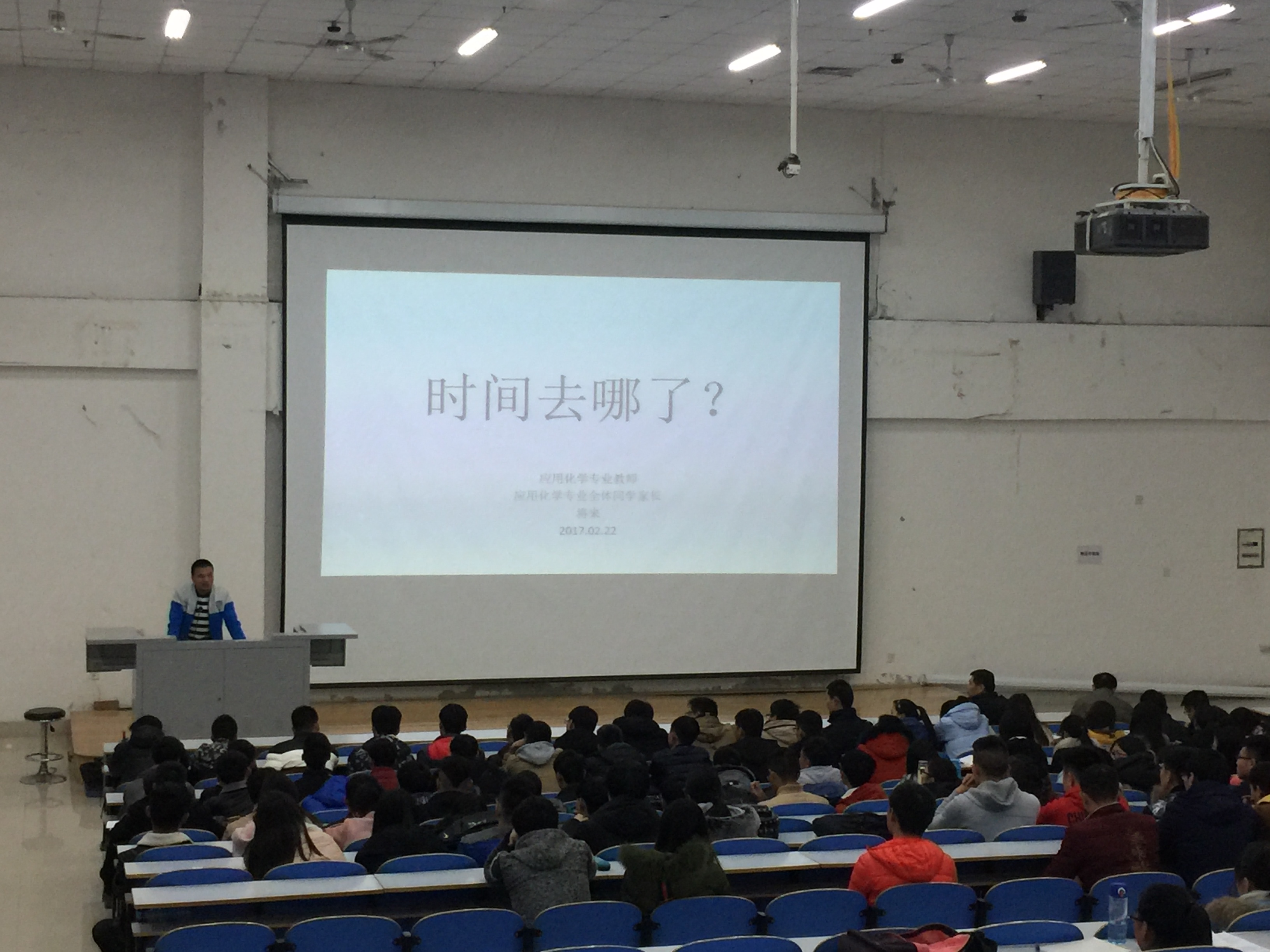 新学期开学之际,为了加强学生思想政治教育,引导学生珍惜时间,勤奋学习,充实自我,规划未来。2017年2月24日,材料与化学工程学院应用化学系在三教楼408组织开展了“时间都去哪儿了”主题教育大会。会议由应用化学系主任孙雨安教授主持,参加本次会议的有应用化学系部分专业老师、专业班主任及应用化学系全体学生。