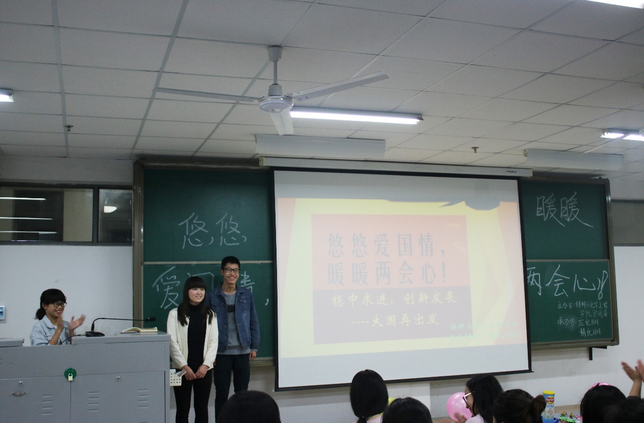 为督促大学生了解国家时事政治,提高大学生自身政治素养,培养大学生饱满的热情、积极的态度、正确的观念,材料与化学工程学院于 2017年3月13日晚在二教楼916室开展了以“悠悠爱国情,暖暖两会心”为主题的团日活动。院分团委干事,16级各班班委及学生代表参加了本次团日活动。