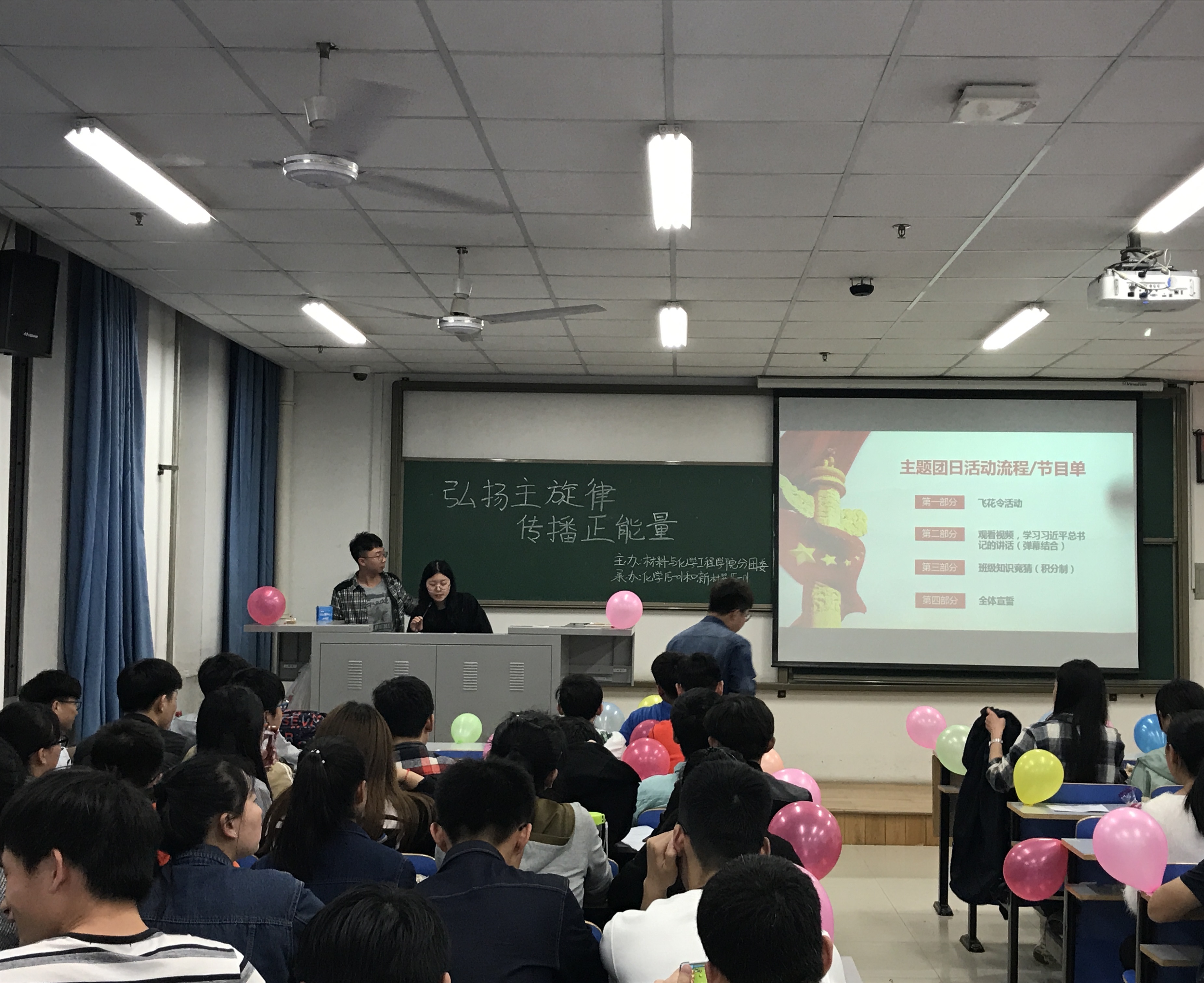 正值五四运动98周年之际,为弘扬五四精神,传承五四运动文化底蕴,促进当代青年团员养成优良的作风,彰显当代大学生奋发向上的精神风貌。材料与化学工程学院分团委在校团委的统一安排部署下,开展了“一学一做”、“我的青春我的梦”、先进个人和先进集体评选、青年团员观看“五四”青年节共青团重大宣传报道和重点文化产品、新团员观看学习“入团第一课”、纪念建团95年暨五四表彰大会等系列活动。学院广大团员青年热情激昂,班级团支部积极组织,先后共计800余人次参加了此次系列活动。
