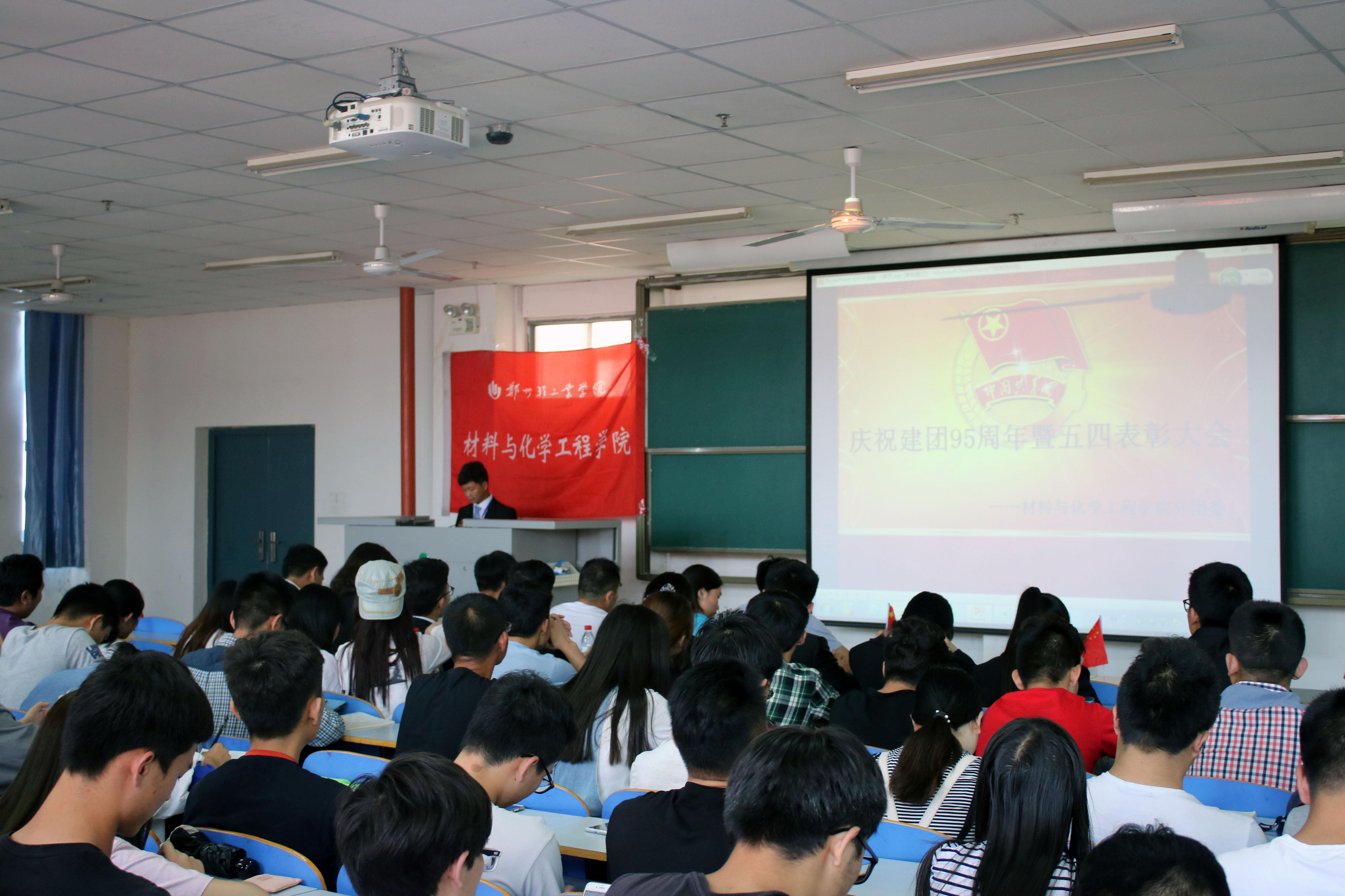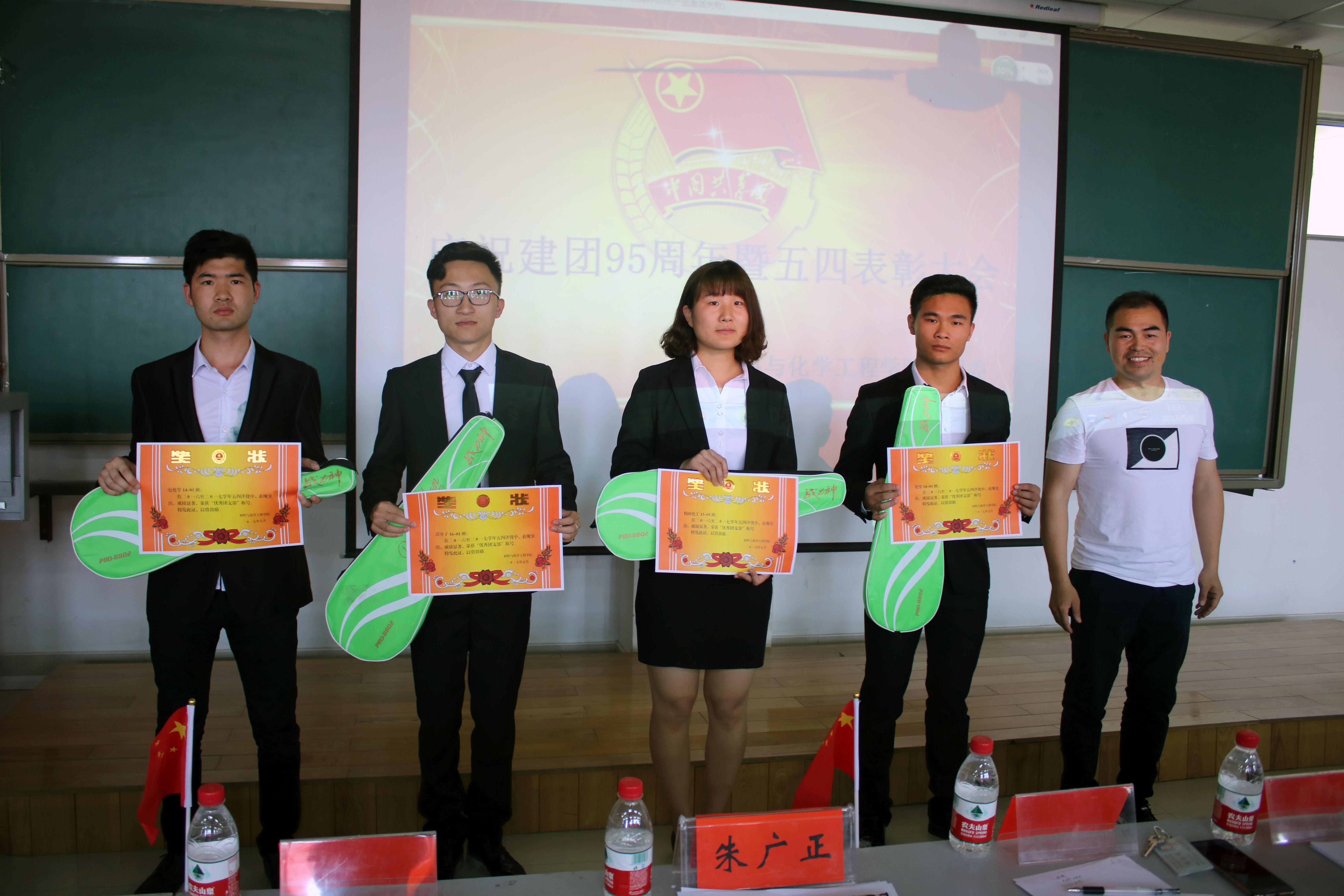 值建团95周年之际,为表彰 2016至2017 学年中涌现出的一批政治素质过硬、模范作用突出、骨干作用明显的先进集体,材料与化学工程学院分团委于5月7日下午1点30分在二教楼916举办以“弘扬五四精神,争做优秀团支部”为主题的表彰大会。分团委书记朱广正老师出席了本次活动。