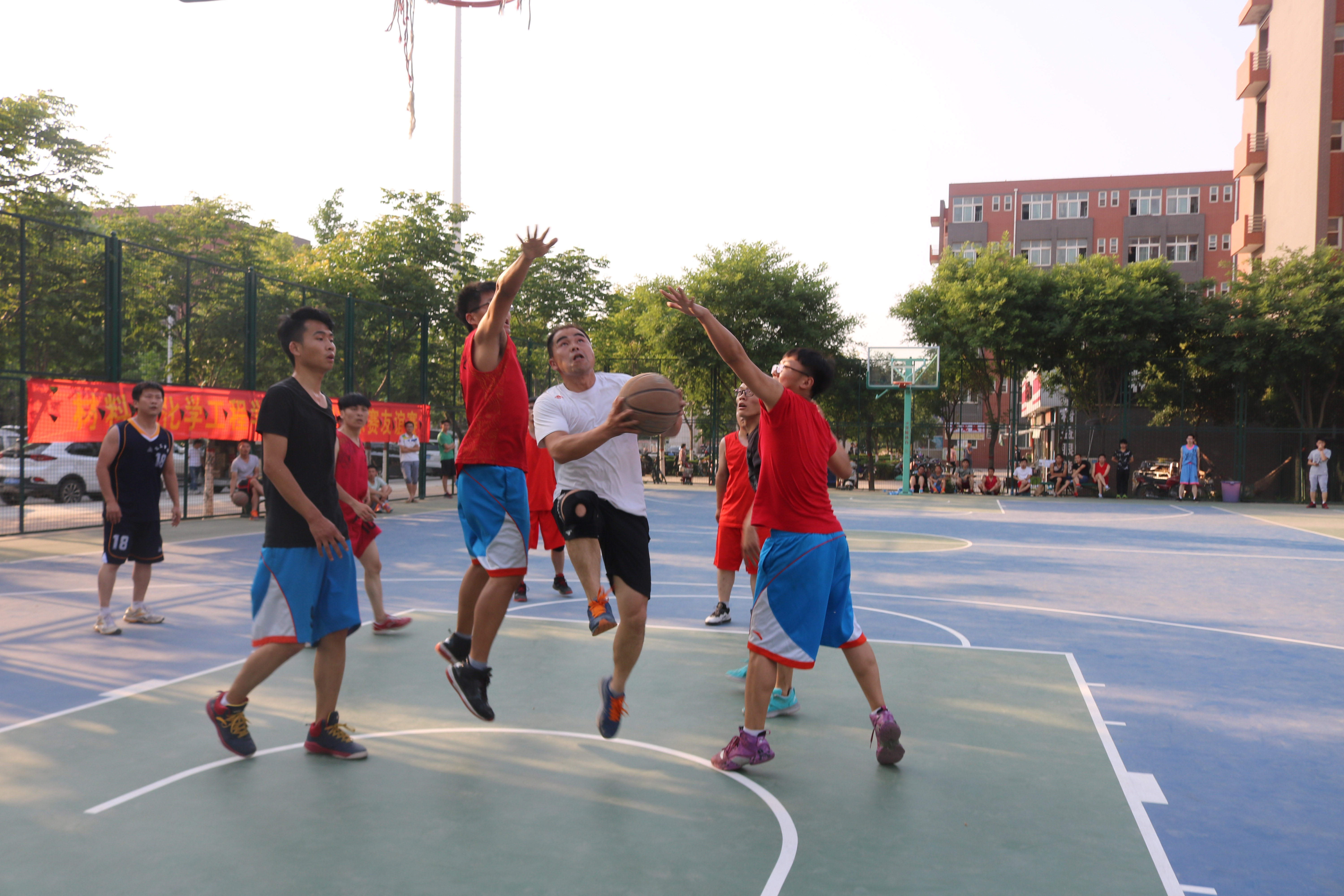 本次篮球友谊赛为大家在炎炎夏日中带来了一份激情,促进了和谐校园的建设,丰富了师生的校园文化生活,更加强了老师与学生之间的交流。