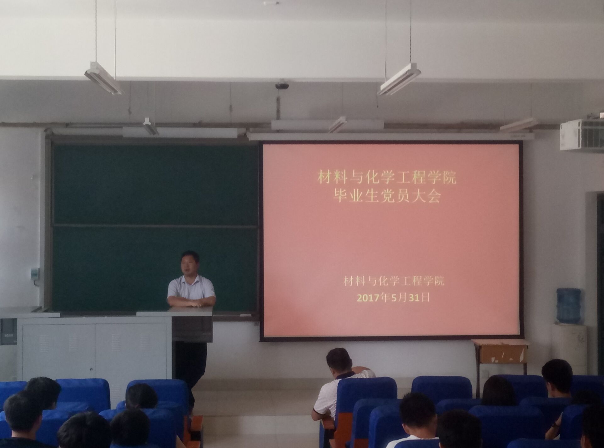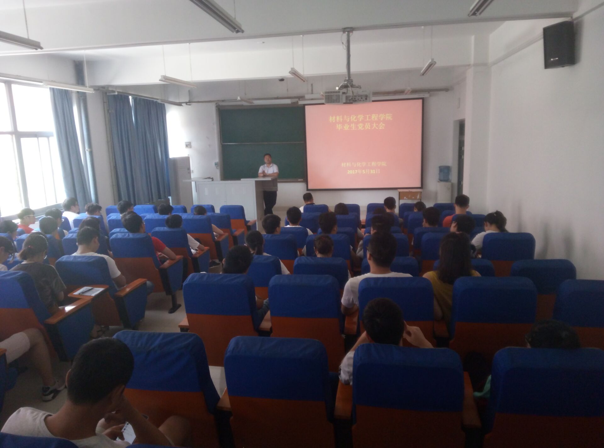为进一步加强对毕业生党员的教育管理,做好毕业生党员组织关系转递和文明离校工作,材料与化学工程学院于 2017年 5月 31日中午12点召开 2017届毕业生党员大会。材料与化学工程学院党总支副书记宋德涛老师、本科生党支部书记朱广正老师及 2017届全体毕业生党员参加了本次大会。