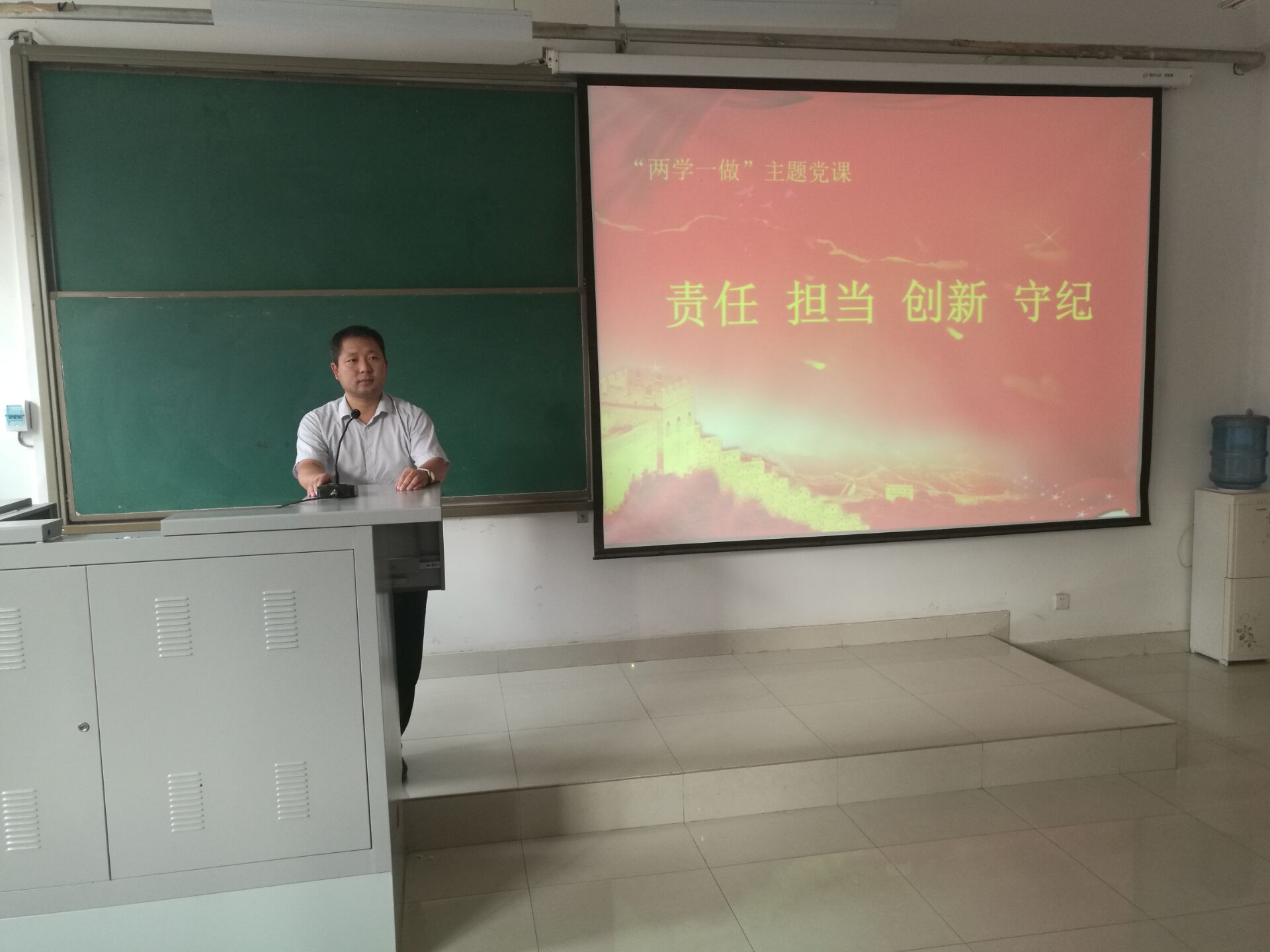 在建党96周年来临之际,依据“两学一做”学习教育常态化制度化有关要求,6月27日中午12点30分,材料与化学工程学院本科生党支部在化工楼218室开展了“支部书记讲党课”活动,本科生党支部书记朱广正担任本次党课主讲,学院党总支宋德涛副书记作为联系本科生党支部的总支委员参加了本次党课。