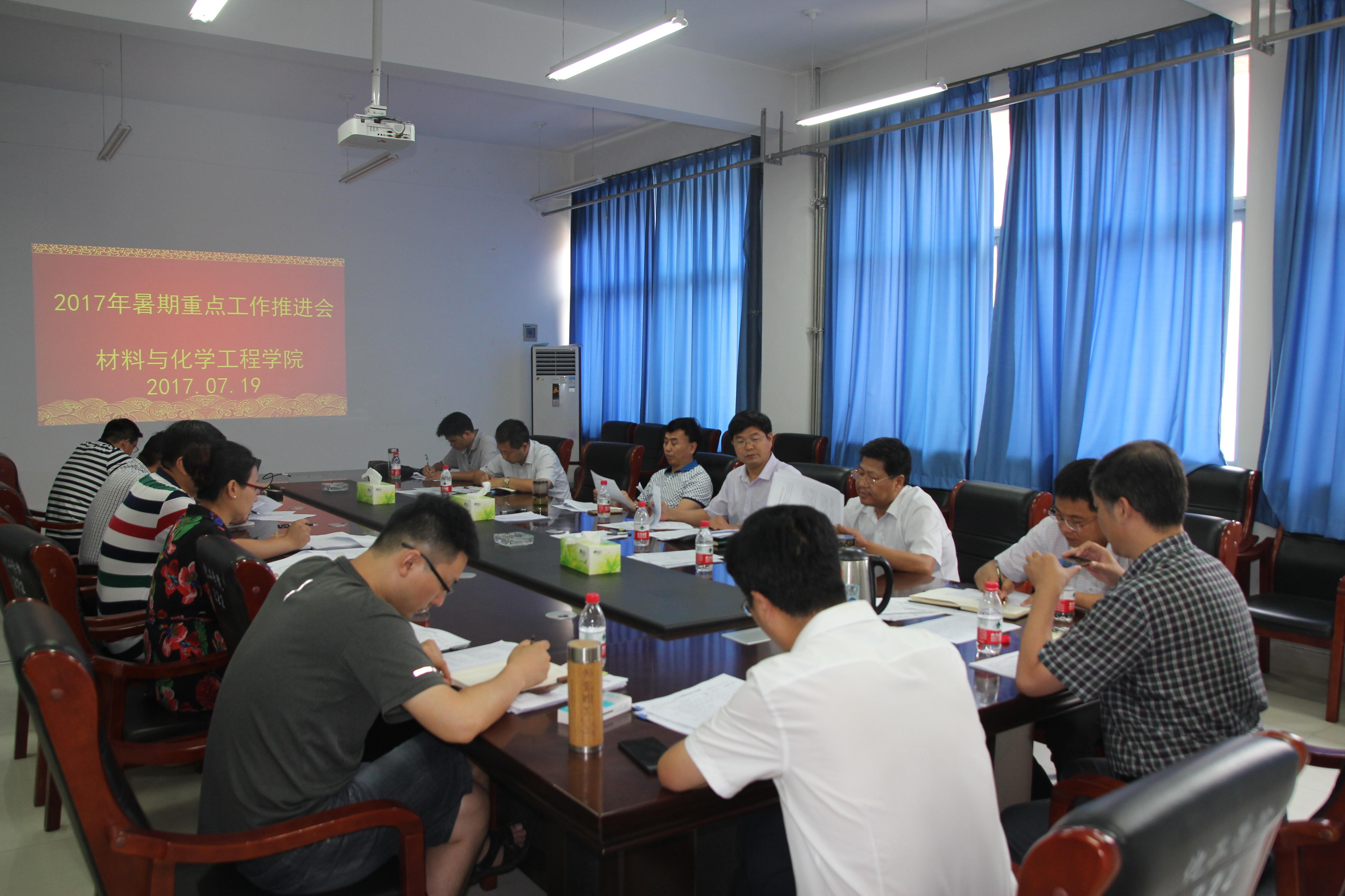 7月19日,材料与化学工程学院在化工楼222会议室召开暑期重点工作推进会。方少明副校长、学院领导班子成员、党政办公室、各系部主任、实验室(中心)主任等相关人员参加了会议。