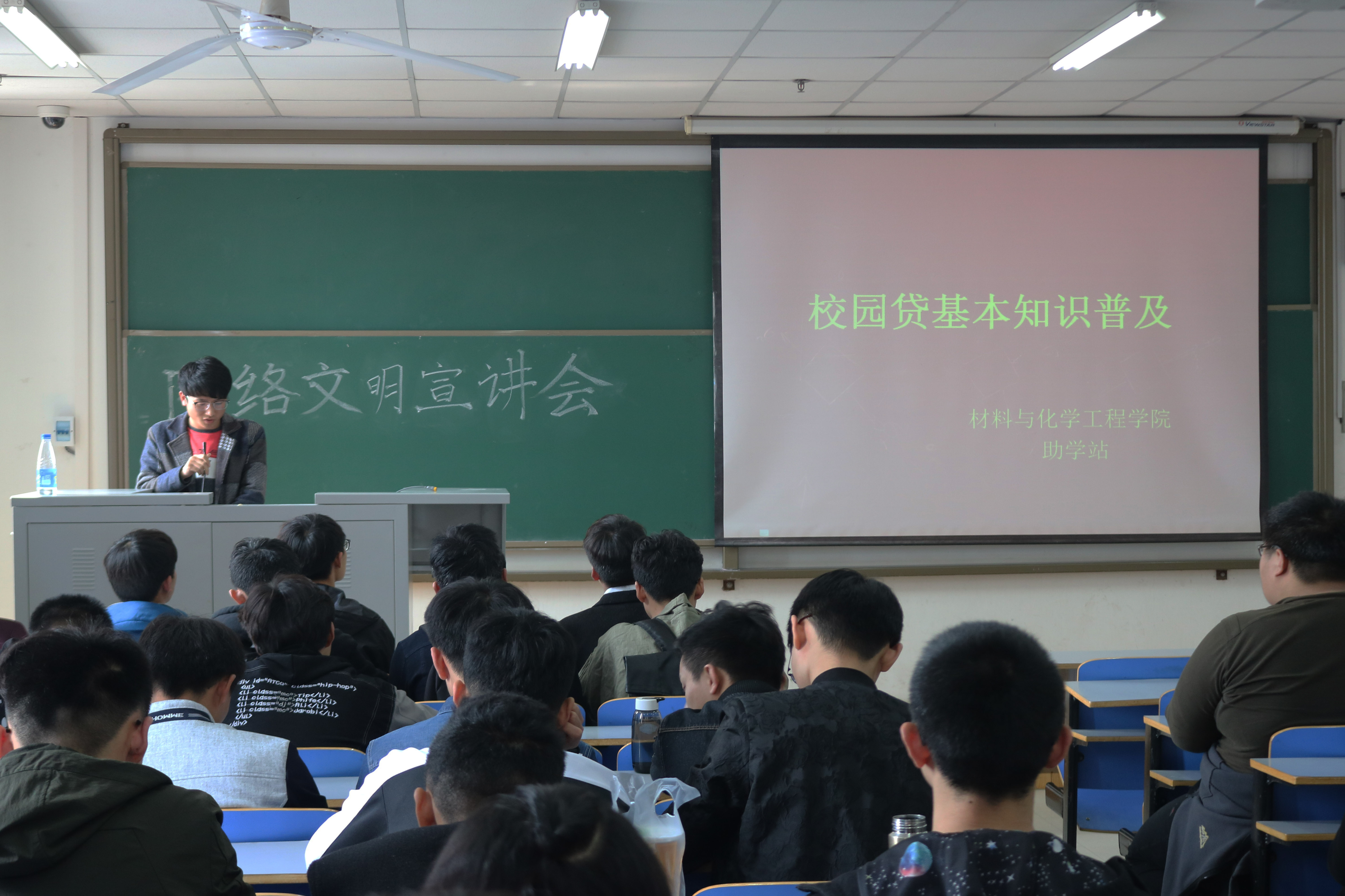 会上,学生会新媒体中心从三个方面倡导大家做网络文明志愿者。首先是健全管理制度,班干部是班级大学生网络文明建设工作的责任人,负责对本班学生进行网络文明的宣传、教育、管理和相关活动的具体实施工作。然后是强化信息监督,班干部及时了解本班学生思想动态及网上言论,发现有不良信息报告辅导员及时处理。最后还需要发挥骨干带头作用,学生会要充分发挥学生组织自我教育、自我管理、自我服务的作用,充分发挥学生干部的先锋模范作用,带头成为“网络文明志愿者”,将自律和他律结合起来,把使用网络与专业学习结合起来,使网络更好地为大学生的成长成才服务。带动广大同学文明上网、上文明网,科学利用网络。随后,助学站的刘浩杰同学为大家详细讲解了网络借贷方面的知识,告诉大家网络借贷的风险和可能存在的潜在危害,同时还在同学们中宣传国家助学贷款和国家的各种资助政策,希望大家借助网络平台,宣传和帮助需要帮助的同学,帮助他们顺利完成学业。