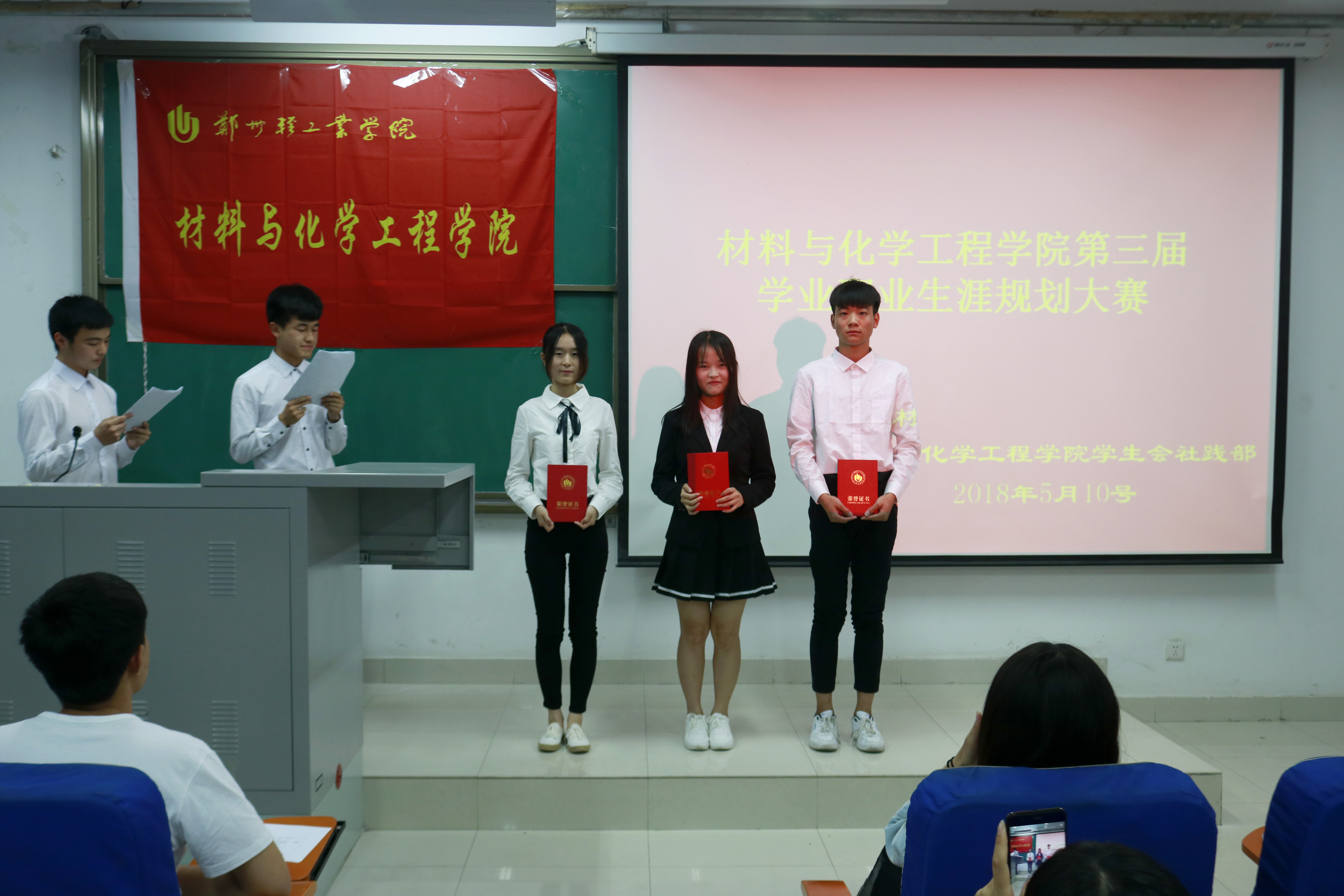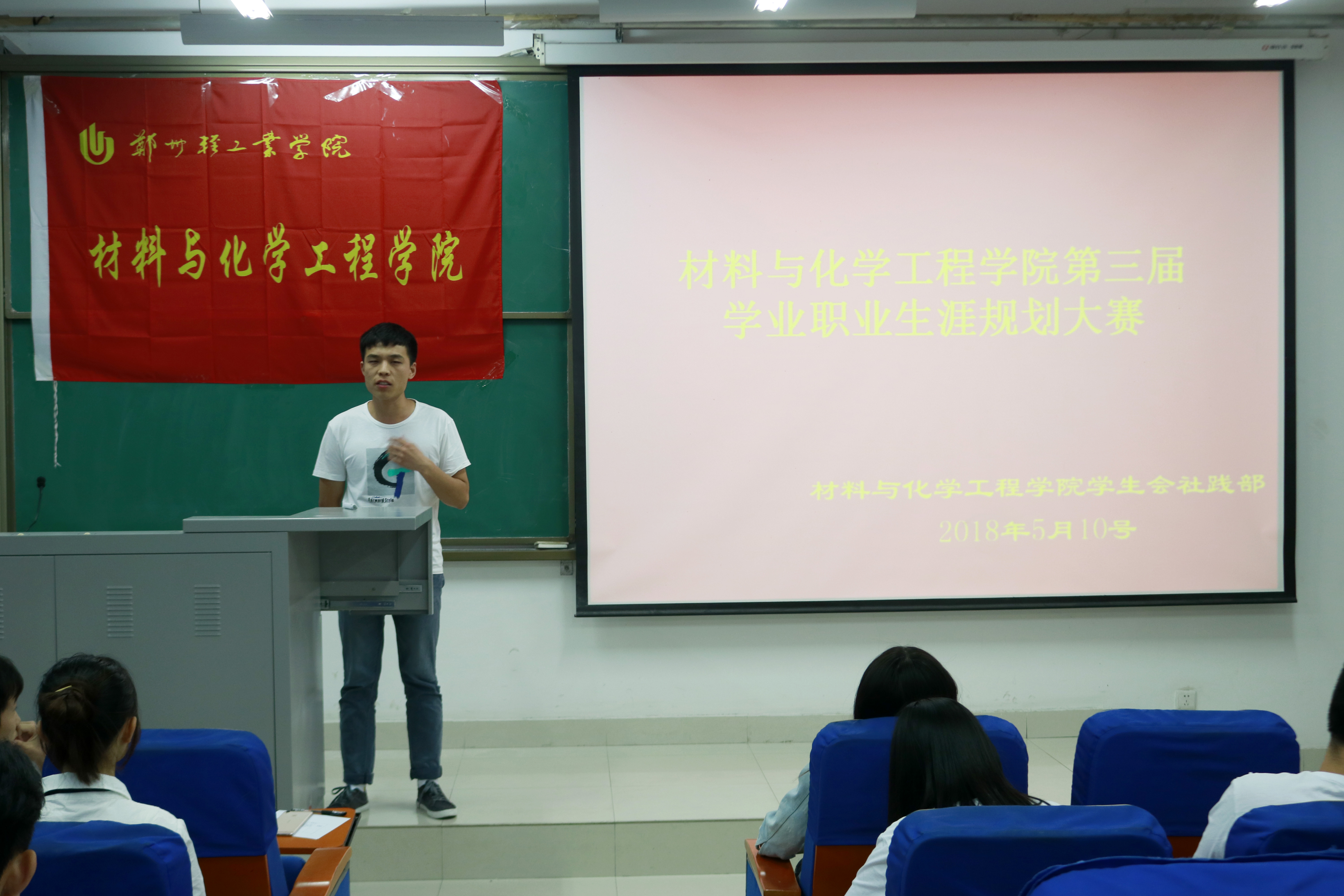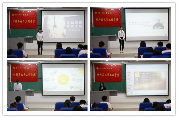 为展现青年的蓬勃朝气,鼓励青年大学生及早对学业职业进行规划,拥有准确的定位,树立明确的人生目标,5月10日下午,材料与化学工程学院于化工楼218室举办“学业职业生涯规划大赛”。各班级代表及分团委、学生会主要学生干部参与本次活动。