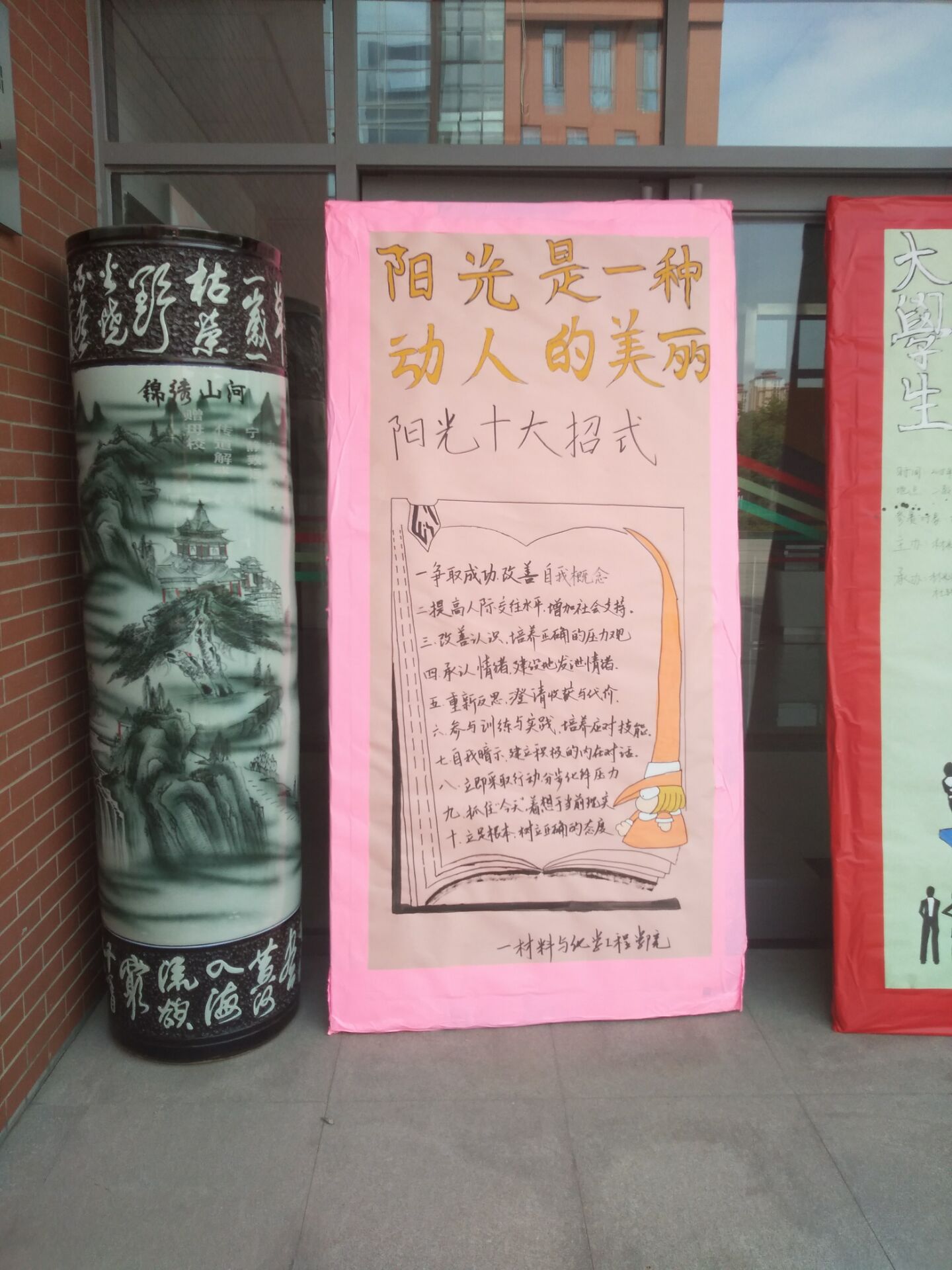 材料与化学工程学院学生会心理部通过4月下旬的调研和策划,结合校心理健康教育中心的安排,在5月3日--5月29日之间相继开展了心理知识展板、心理电影展播以及“微笑共享,传递快乐”等心理健康教育活动。心理知识展板旨在大学生群体中通过文字的形式宣传、普及心理健康知识,帮助大学生树立心理健康意识,认识到心理健康的重要性。心理电影展播——观看电影,感悟人生,同学们深刻认识到心理的复杂性与多面性,同时也了解到关心身边同学的心理健康的重要性。“微笑共享,传递快乐”主题活动通过在全院范围内收集同学们的各个微笑瞬间,通过制作视频以及宣传板展示等一系列措施分享微笑,旨在让同学们用笑容驱赶困惑,用快乐享受美好明天。