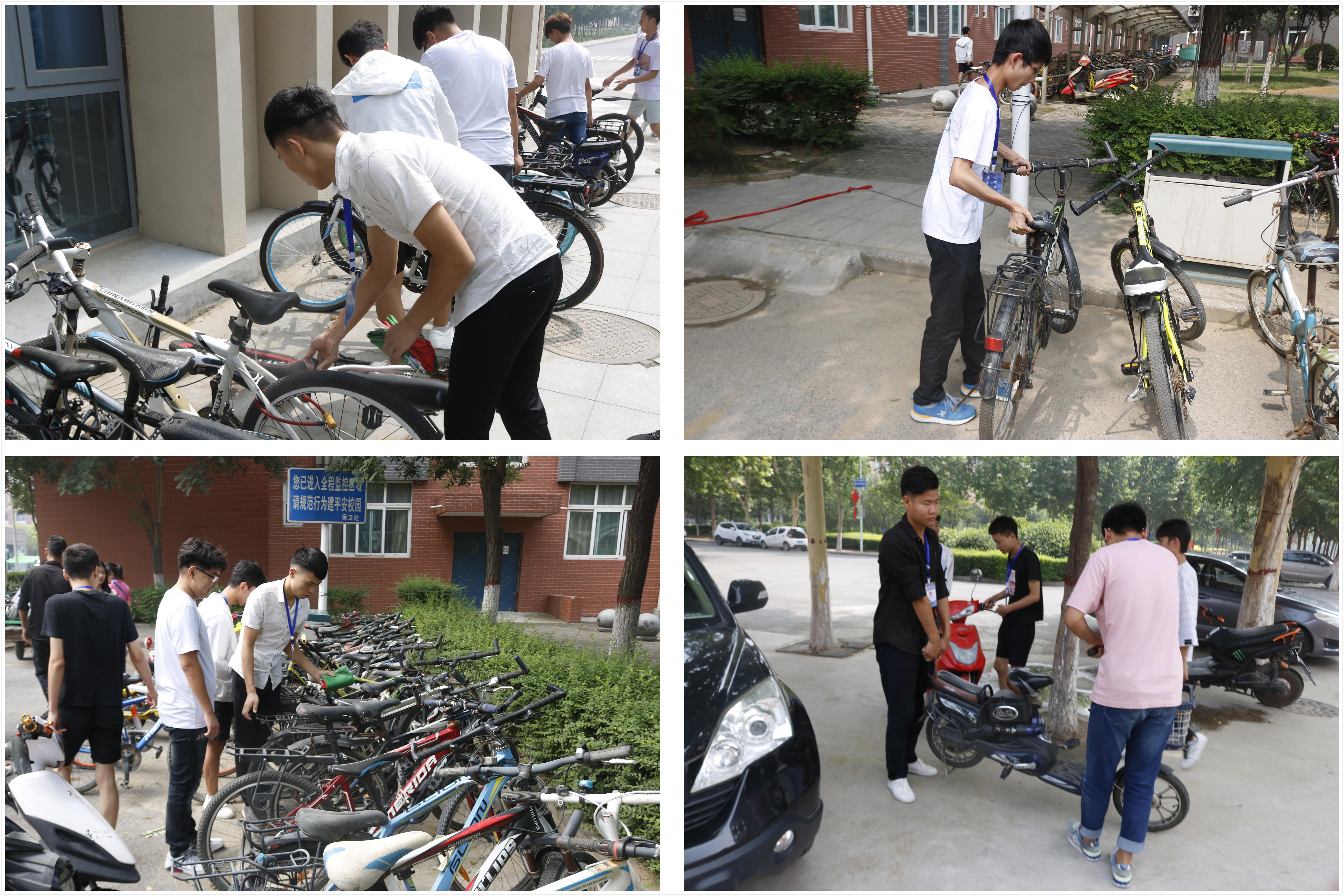 活动开始之前,志愿者们迎着烈日,在百度生活超市前集合。工作人员按照工作安排分别对百度生活超市至北门之间的停车区域整理划分、按类别将各类车摆放整齐,并对周围卫生进行打扫。烈日炎炎下,志愿者们工作认真,迅速的将车辆规整到位,周围的环境也焕然一新。接下来,志愿者们又兵分两队,分别由分团委干事张凯和郑博元带队,去三号楼下和十一号楼下进行车辆的规整。最后,本次志愿服务活动在同学们欢声笑语中圆满结束。