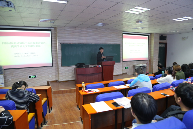 2018年10月18日下午14:30——15:30,周福礼博士应邀请参加在经管楼311举行的研究生学术报告,周福礼博士此次报告的题目是《如何利用科研辅助工具追踪学术前沿、提升学术论文的撰写效率》。经济与管理学院MBA和MPA项目中心主任彭青秀博士、专职辅导员吴雨衡老师参加本次学术报告会。本次报告会由张省博士主持。