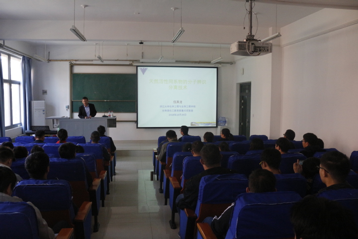 10月30日,应材料与化学工程学院、河南省表界面科学重点实验室邀请,浙江大学博士生导师任其龙教授在化工楼218室做了题为“天然活性同系物分子辨识萃取分离技术”的学术报告。报告会由吴诗德副院长主持,我院相关专业教师及全体研究生同学参加报告会。