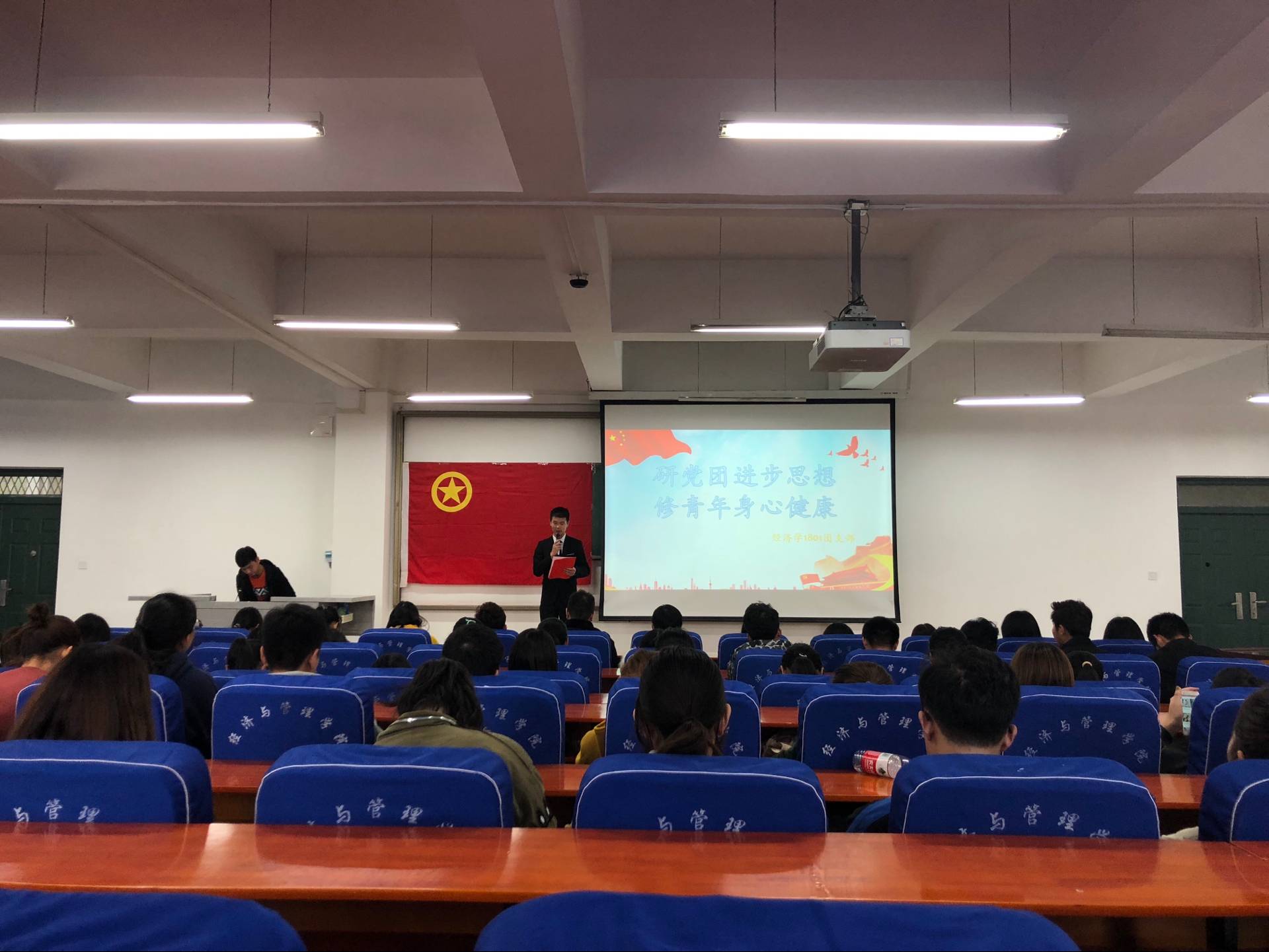 为进一步加深我院学生对党的十九大精神的了解,使青年学子认识了解党的十九大的精神的重要性,更好的学习与践行十九大精神,经济与管理学院于11月29日中午12:20在经管楼211举办了以“研党团进步思想,修青年身心健康”为主题的学习十九大精神的主题团课。我院2018级各班团干部和全体学生干部参加了此次活动。