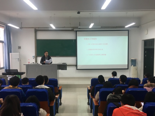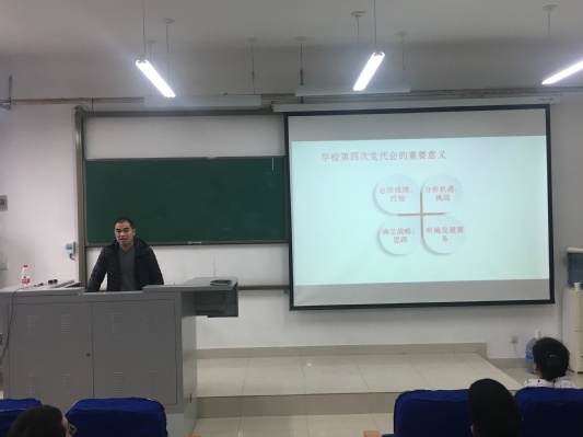 为学习好、宣传好、贯彻好学校第四次党代会精神,使广大学生党员了解学校发展成果,明确学校下一阶段的发展目标,在建设高水平轻工业大学的征程中发挥学生党员的先锋模范作用,学院于12月5日中午在化工楼218开展“学校第四次党代会精神”理论学习活动,学院本科生第三党支部书记朱广正老师、学院全体学生党员参加了本次学习活动。