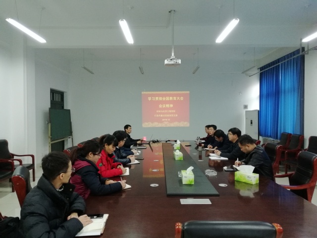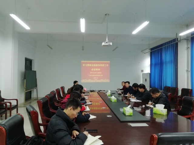 为庆祝改革开放40周年,全面贯彻落实党的十九大精神和习近平总书记系列重要讲话精神。根据上级党组织的工作安排,2018年12月21日上午,材料与化学工程学院行政与重点实验室党支部在材化楼222会议室,共同学习了全国教育大会和全国宣传思想文化工作会议精神专题活动。党总支康国磊书记、宋德涛副书记、吴诗德副院长和全体支部成员参加了支部活动,活动由党支部书记彭东来同志主持。
