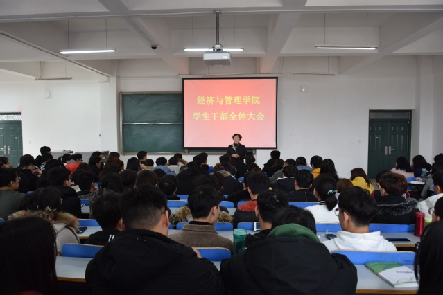 2019年2月26日中午12:30,经济与管理学院在经管楼309教室召开学生干部工作会议,经济与管理学院分团委书记姚少华老师和全体团学干部参加此次大会。大会由姚少华老师主持。
