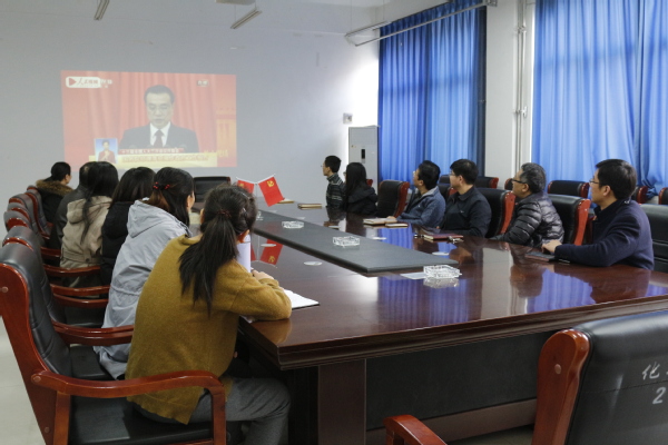 2019年3月5日上午9时,十三届全国人大二次会议在人民大会堂隆重开幕。为了及时、全面学习领会十三届全国人大二次会议精神,材料与化学工程学院组织师生党员以各种形式收听收看十三届全国人大二次会议开幕会盛况。在化工楼222会议室,学院领导及部分教工党员、集中观看了十三届全国人大二次会议开幕会。