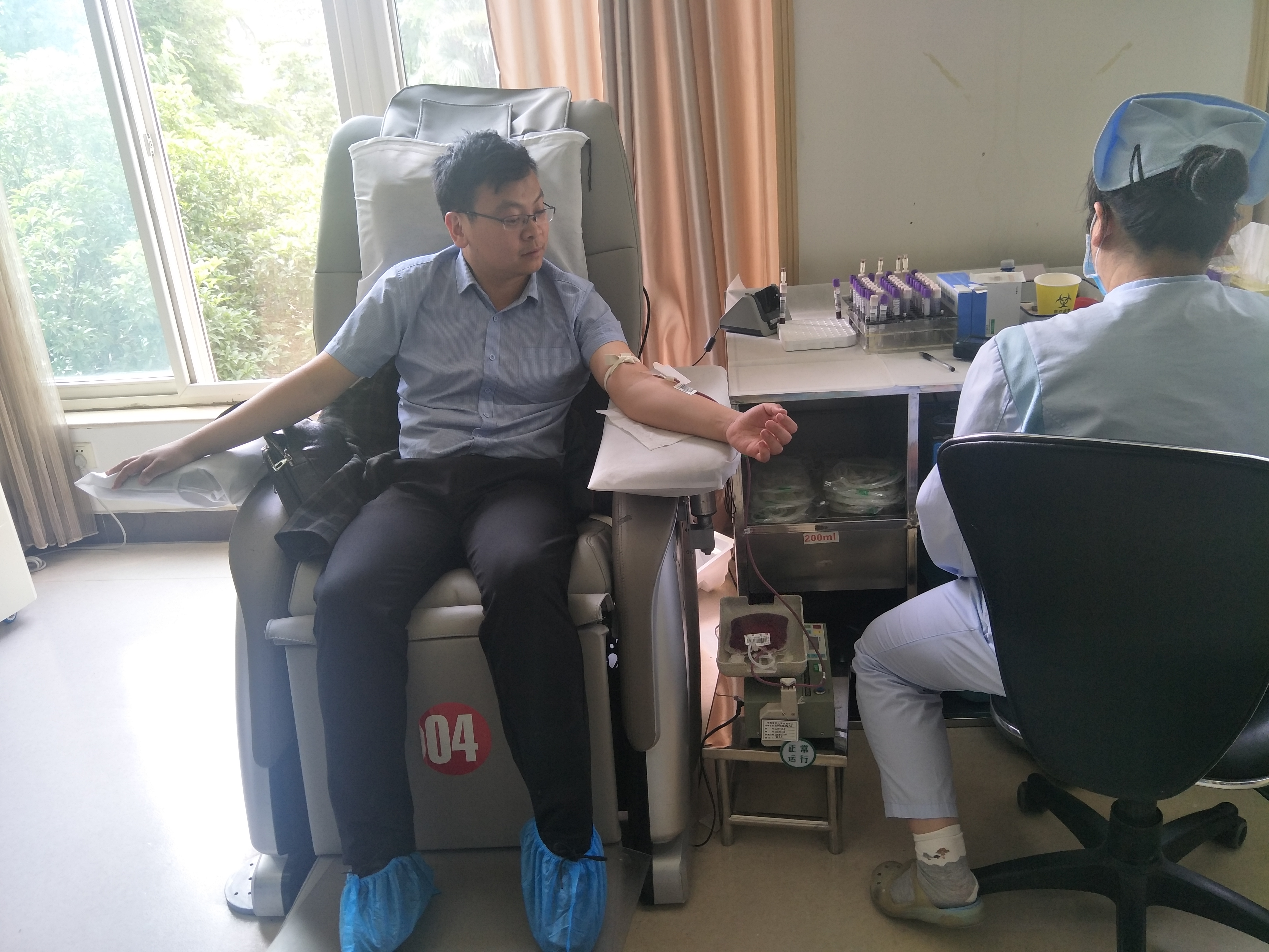 5月8日早晨7:30,我院组织参加无偿献血的志愿者们统一乘坐献血大巴前往河南省红十字血液中心。在工作人员的引导下,填表、体检、化验、抽血等过程有序进行。看着自己的血液流入血袋,志愿者们纷纷表示感受到了爱心奉献给自身带来的快乐与幸福。献血是爱,献血是奉献。志愿者们用自己平凡而伟大的爱心,把滴滴血液汇聚成川流不息的生命长河,让无数垂危的病人得到生命的希望。志愿者们不仅是用这些血液挽救了人的生命,更重要的是通过这样的行动将爱心传播出去,让全社会知道志愿的幸福、奉献的真谛。