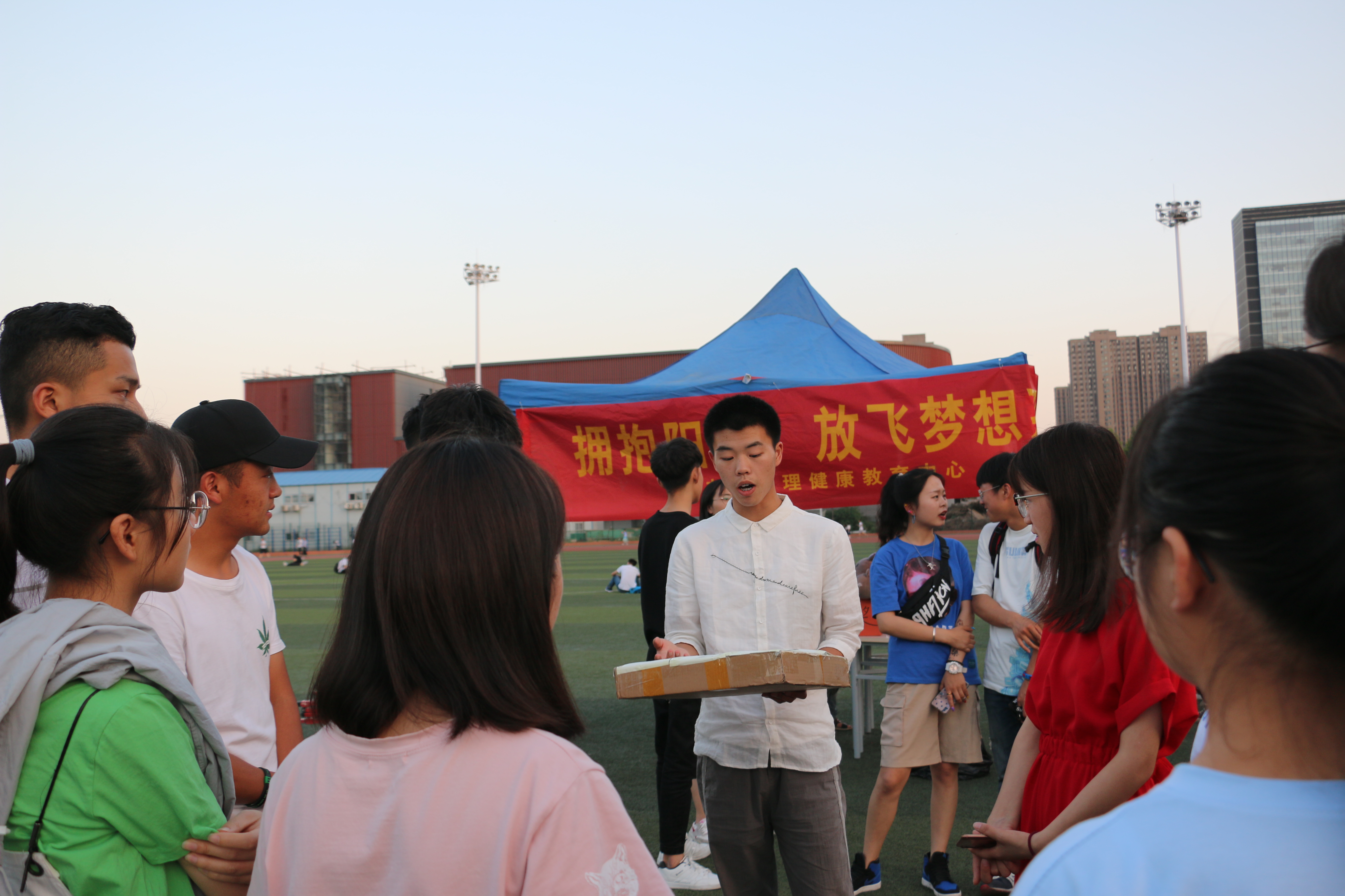 为进一步提高大学生心理健康知识水平,减轻大家生活中产生的压力,让更多的同学能够放松身心,以更加积极的心态去面对大学生活,以更好的状态投入到学习之中,经济与管理学院于5月21日下午19:00在科学校区足球场举办了蒲公英素质提升系列项目“拥抱阳光,放飞梦想”之鸭梨九宫格活动。